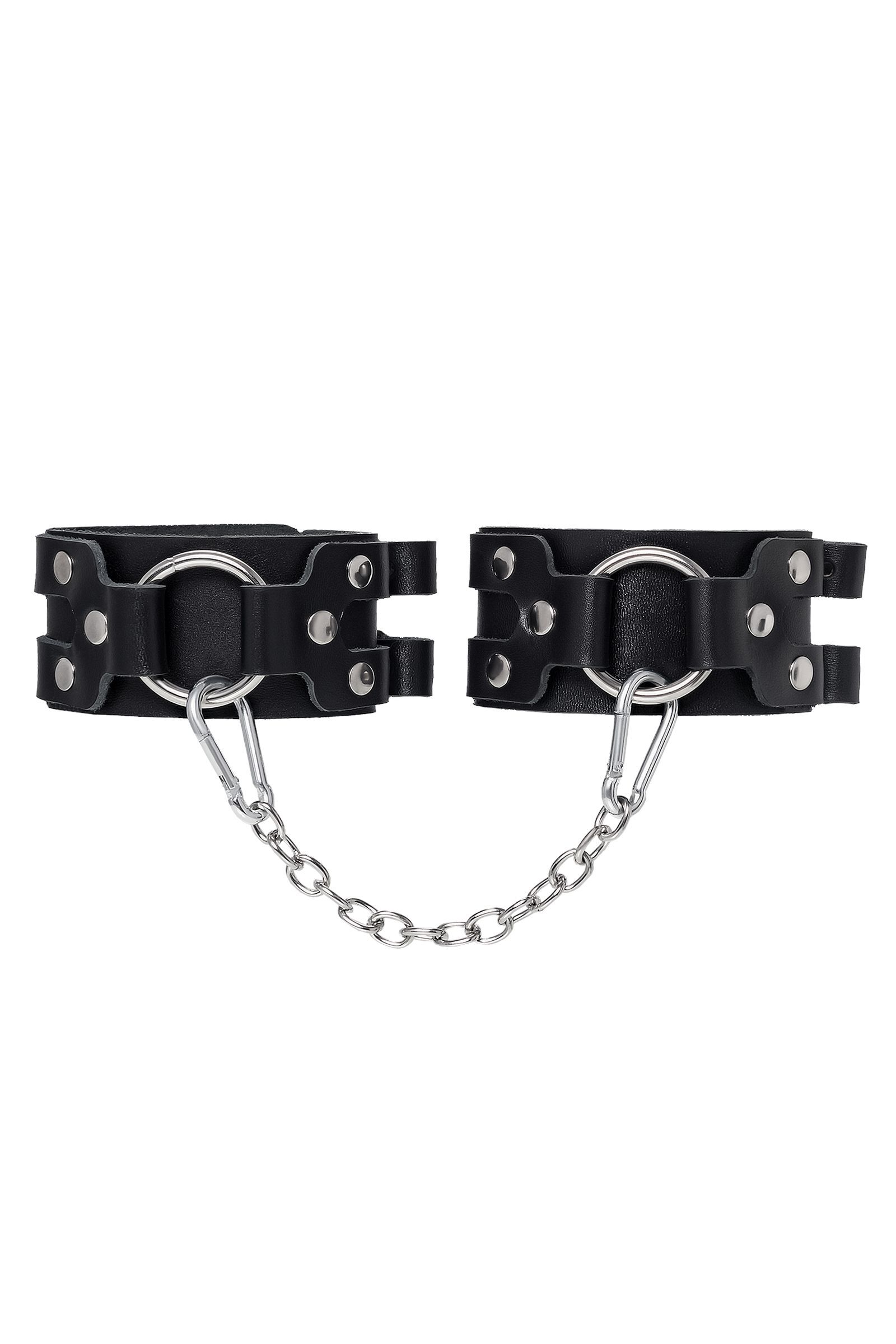 Черные кожаные оковы с двумя ремешками