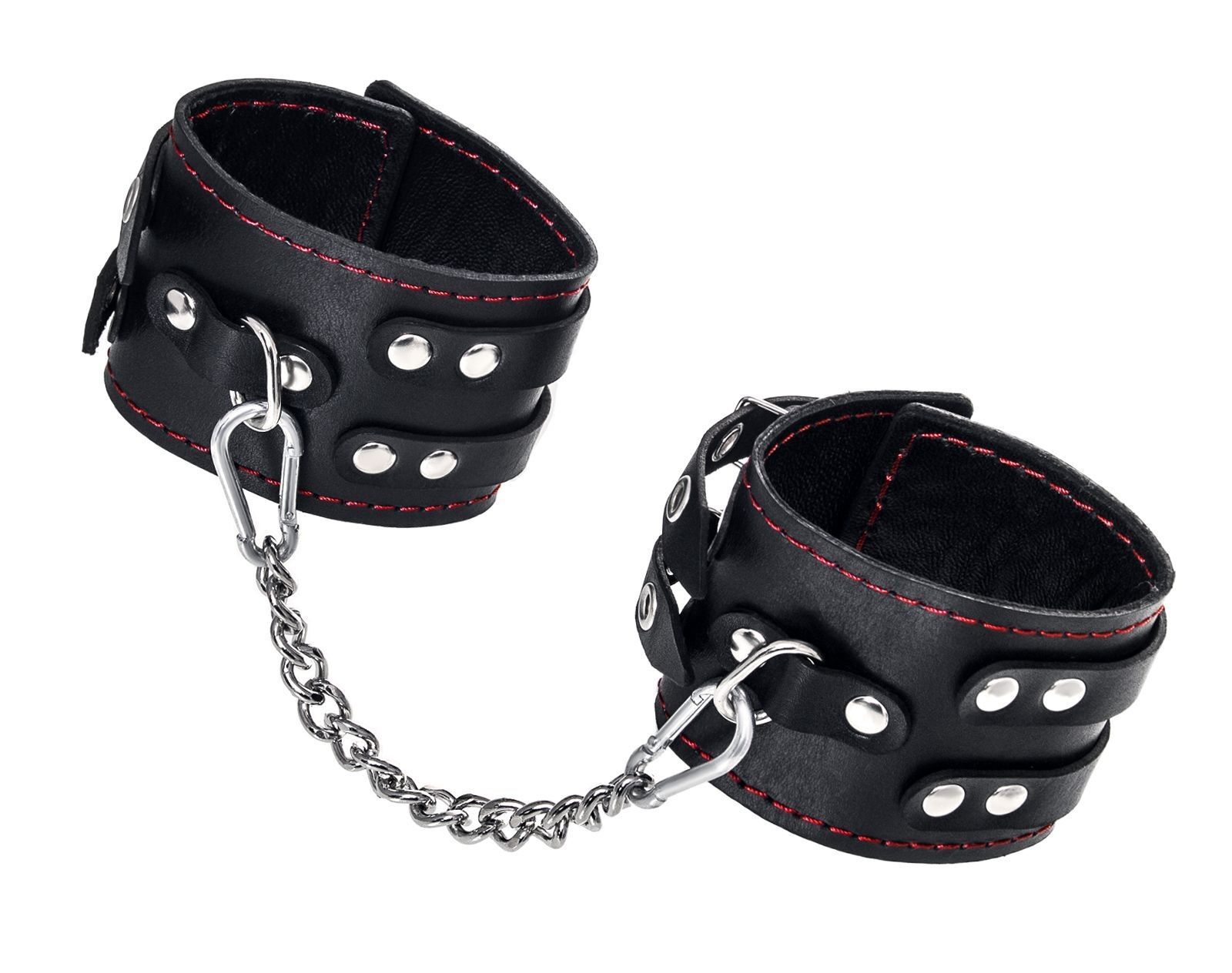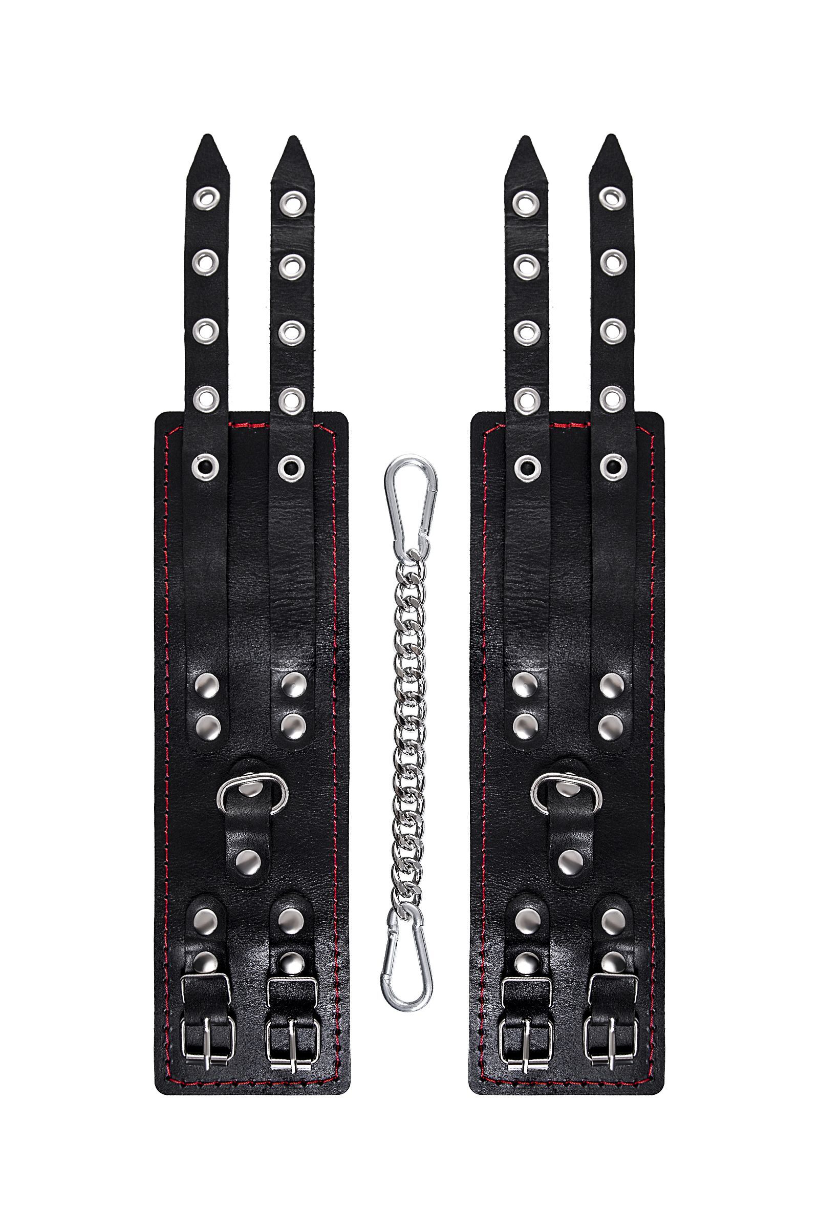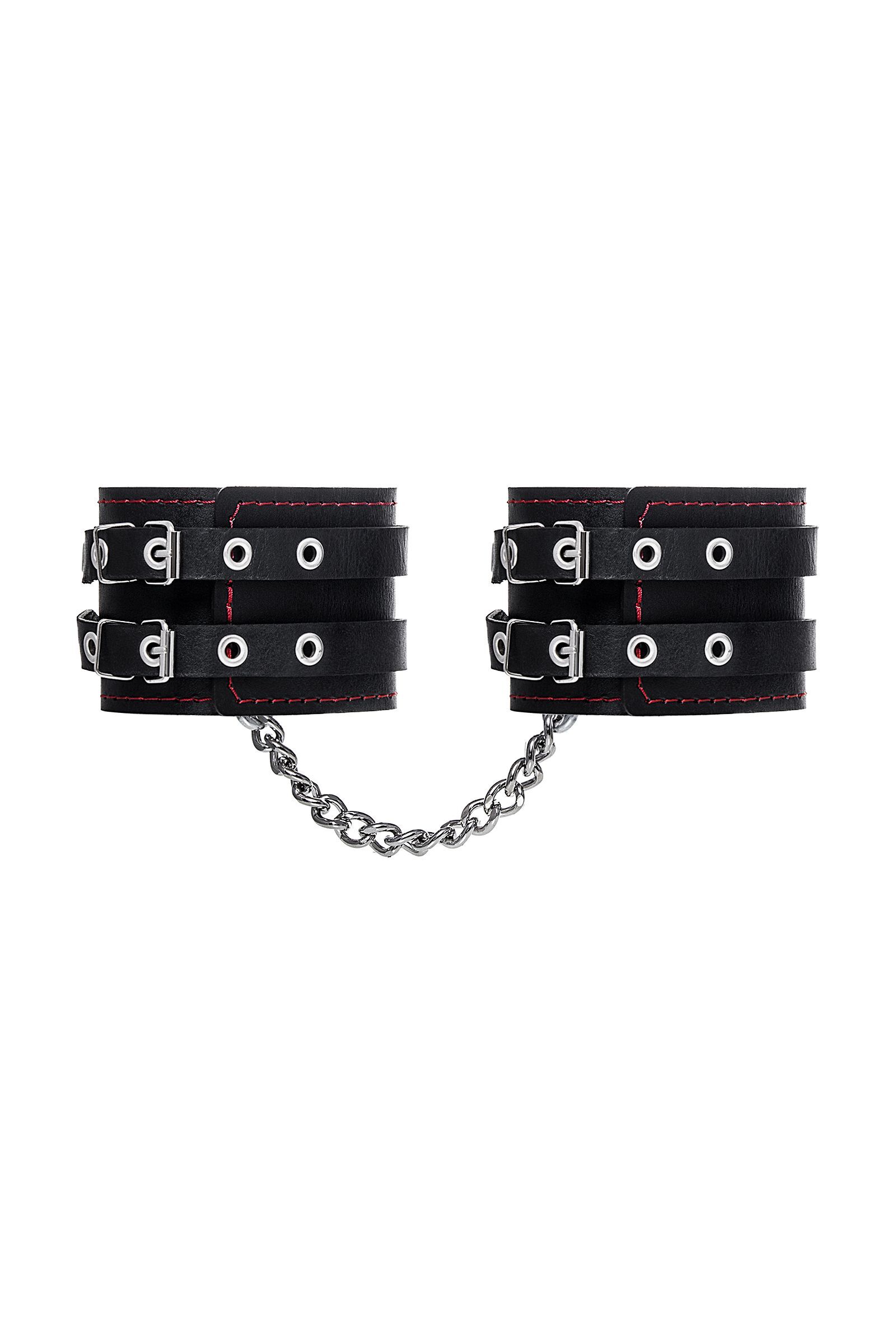 Черные кожаные оковы с двумя ремнями и контрастной строчкой