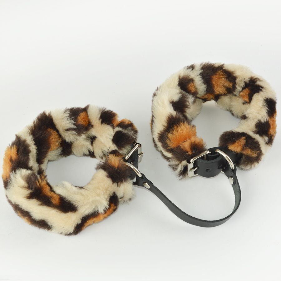 Черные кожаные оковы со съемной леопардовой опушкой