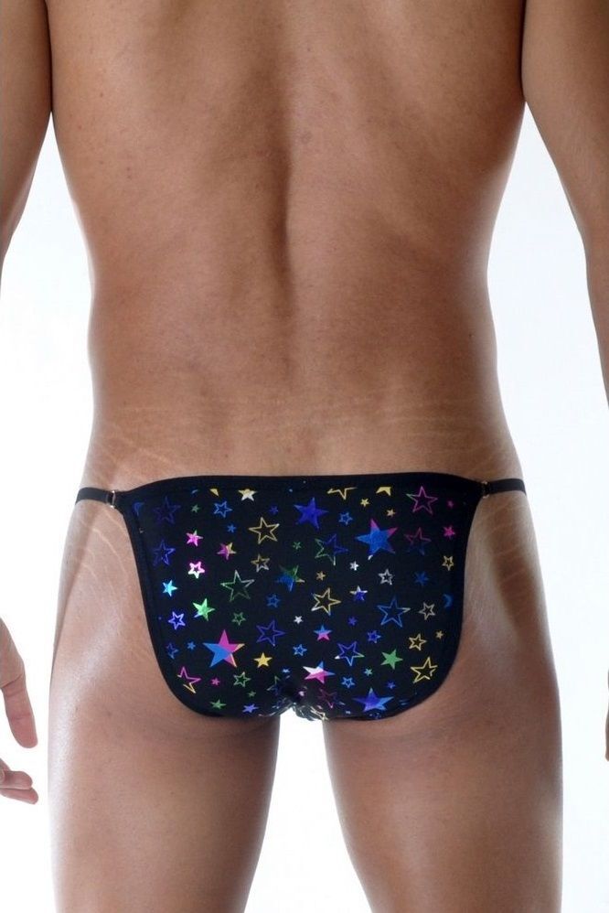 Черные мужские трусы-танга с разноцветными блестящими звездами