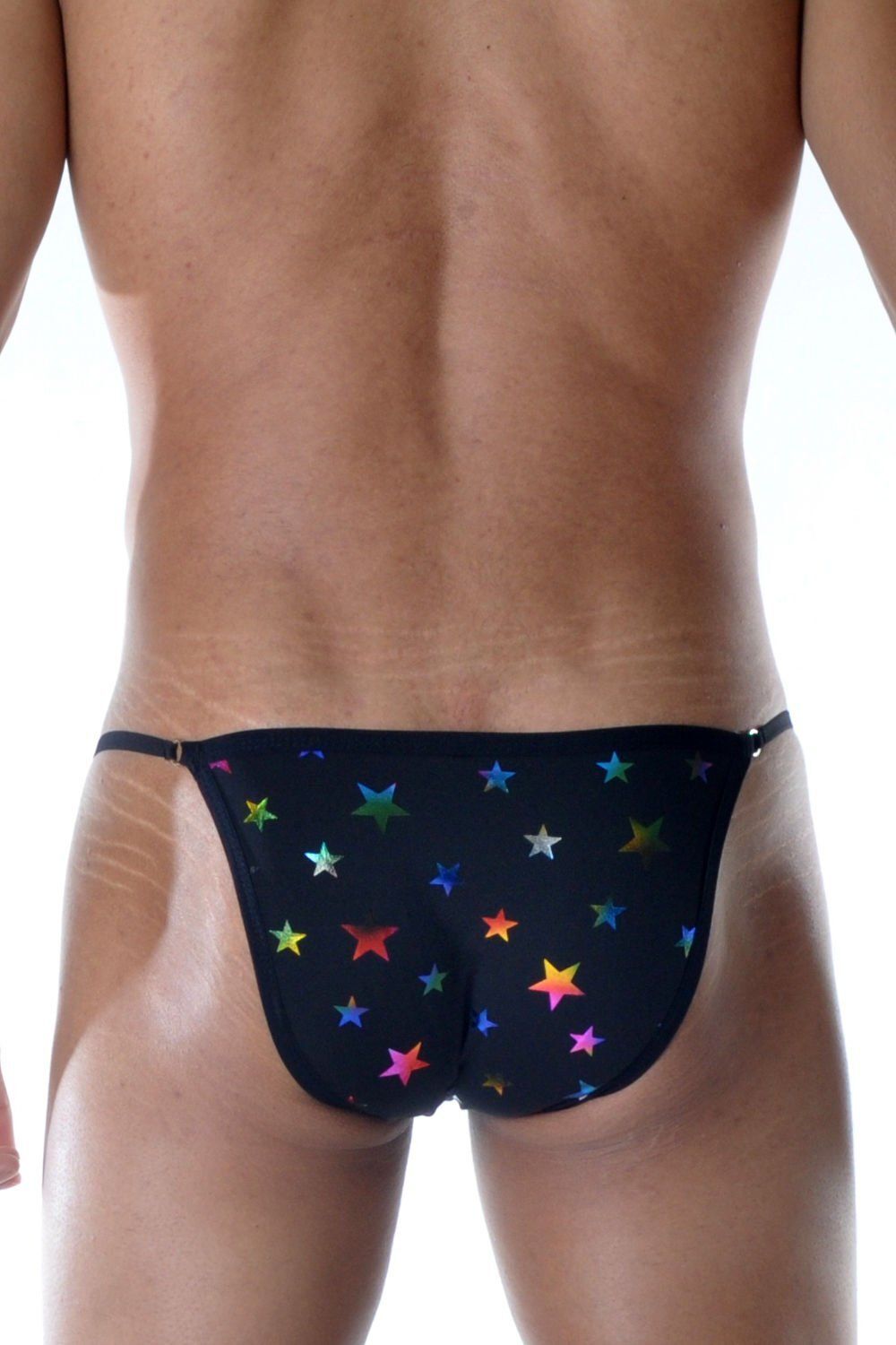 Черные мужские трусы-танга с разноцветными звездами