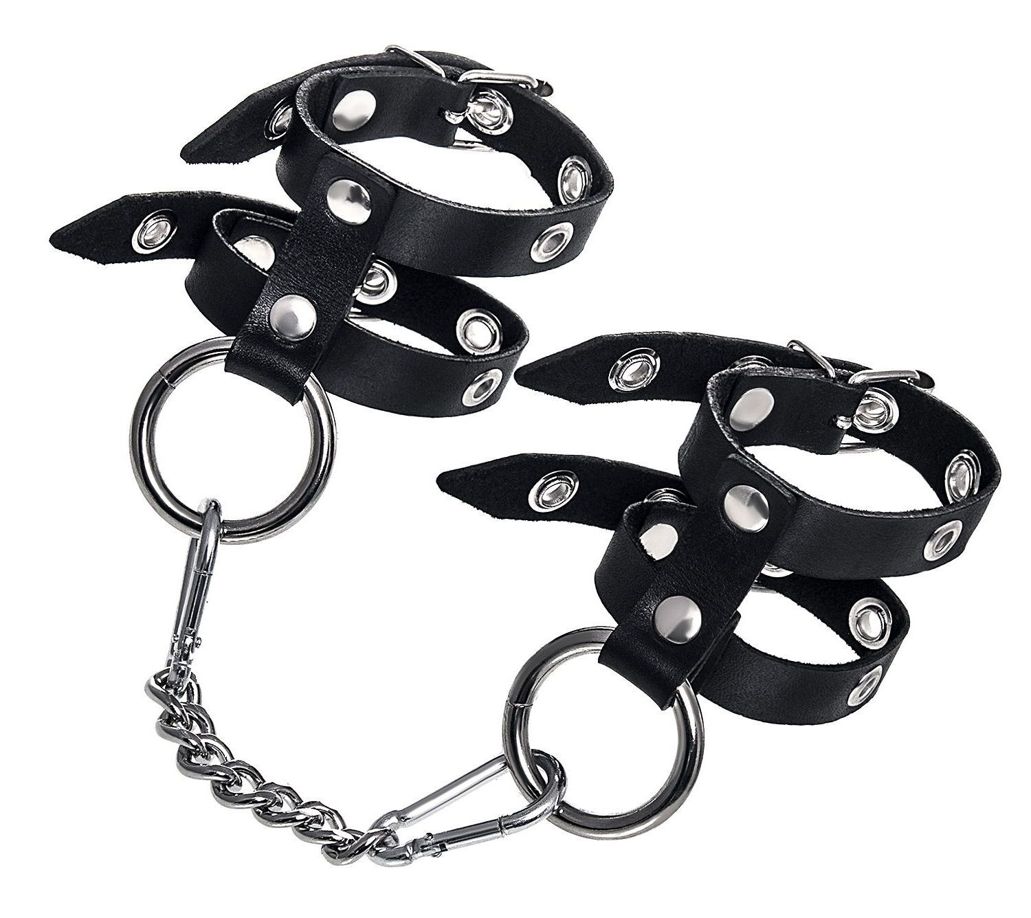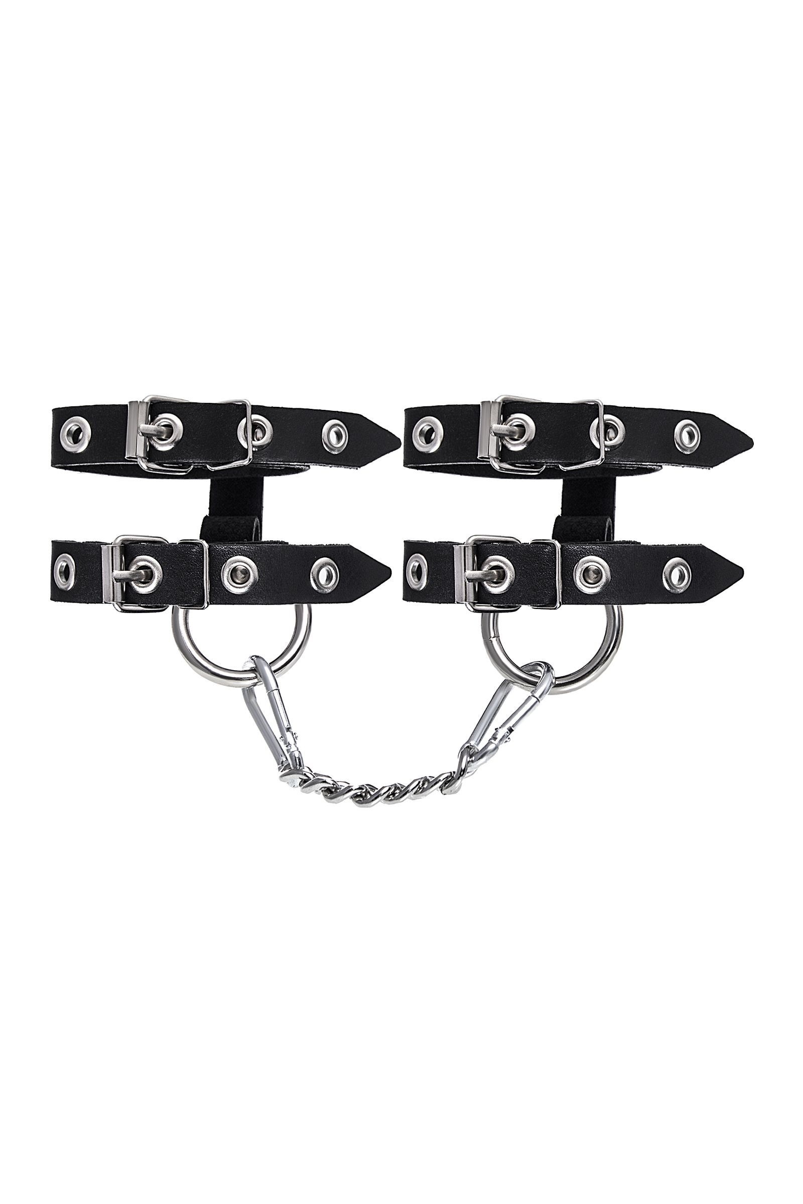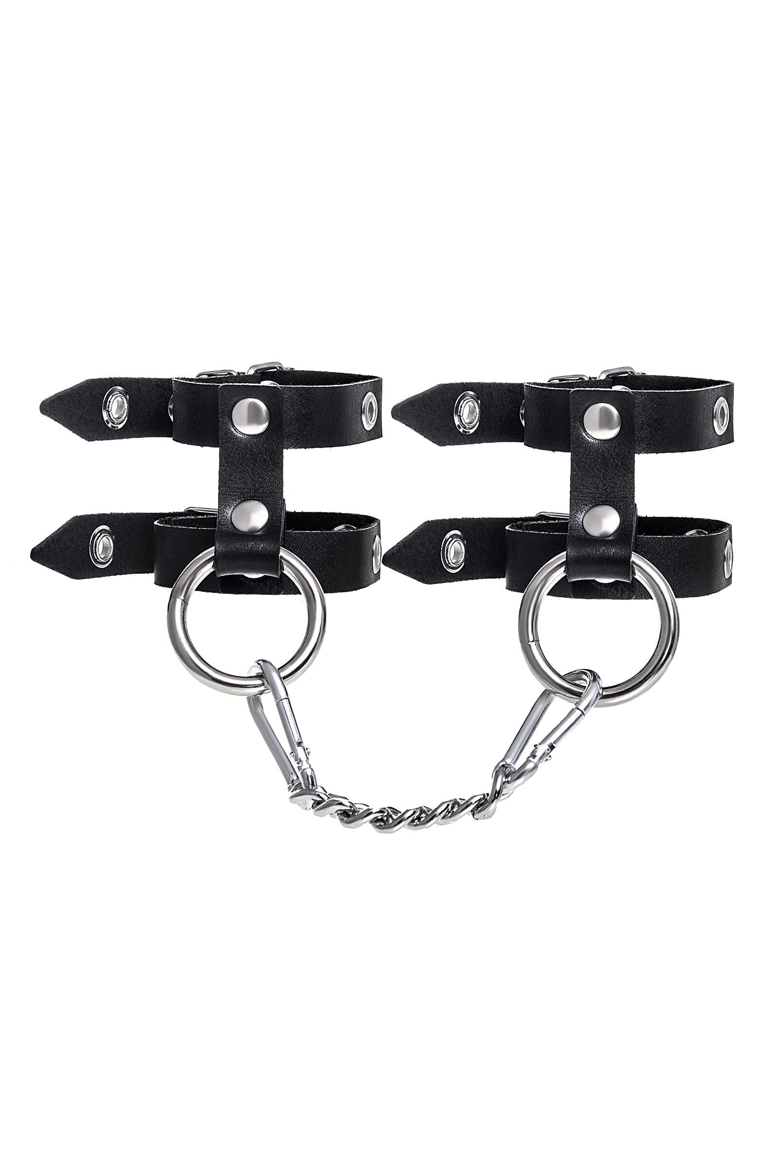Черные однослойные кожаные наручники из двух ремешков
