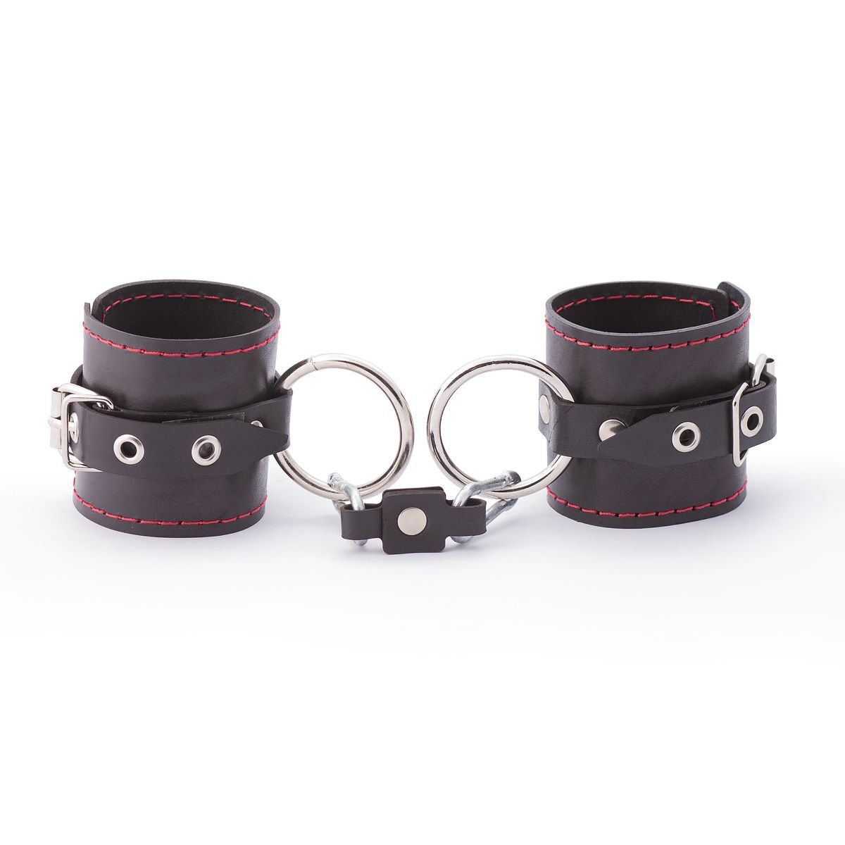 Черные однослойные кожаные наручники с контрастной строчкой