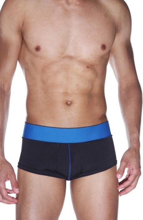 Черные трусы-хипсы на широком синем поясе