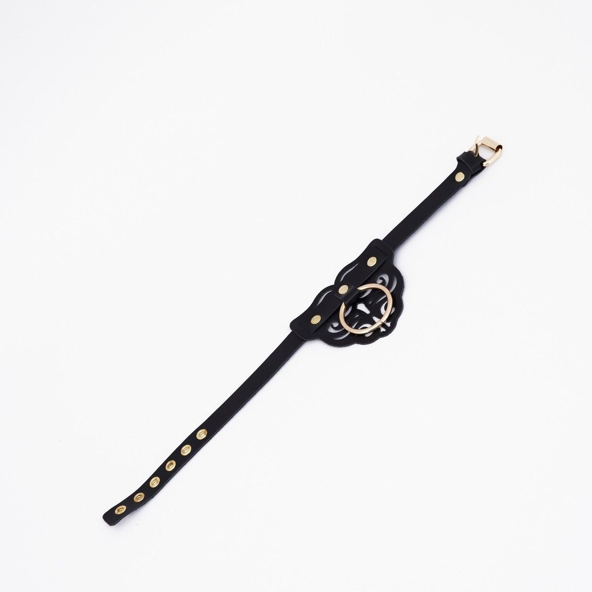 Черный чокер с клепками и золотистой фурнитурой