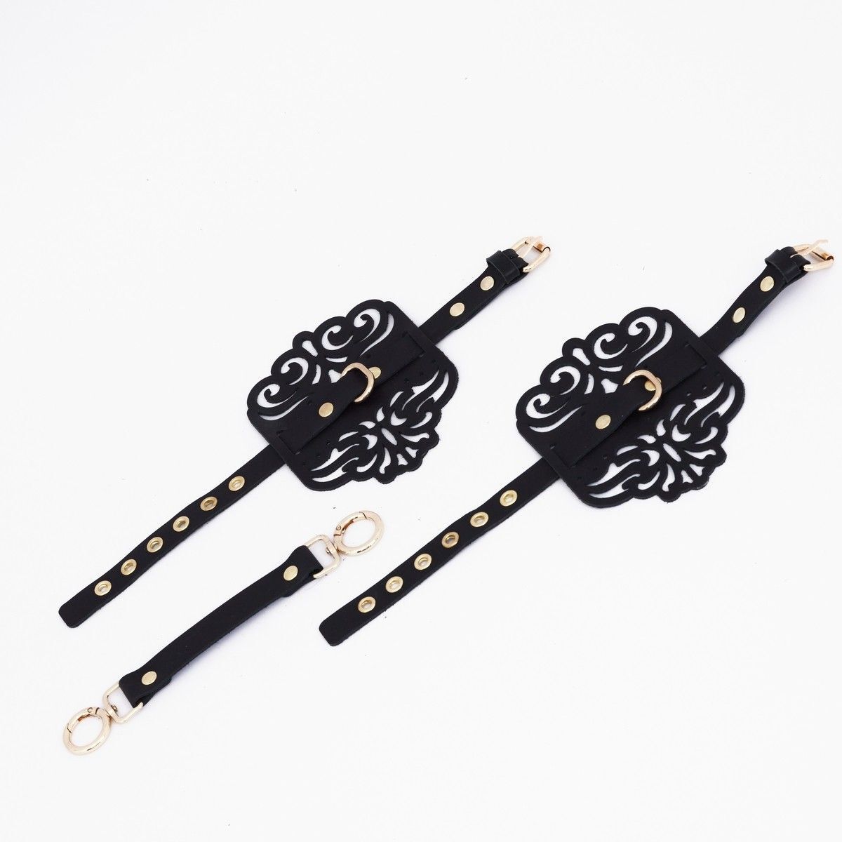 Черный фигурные оковы с золотистой фурнитурой
