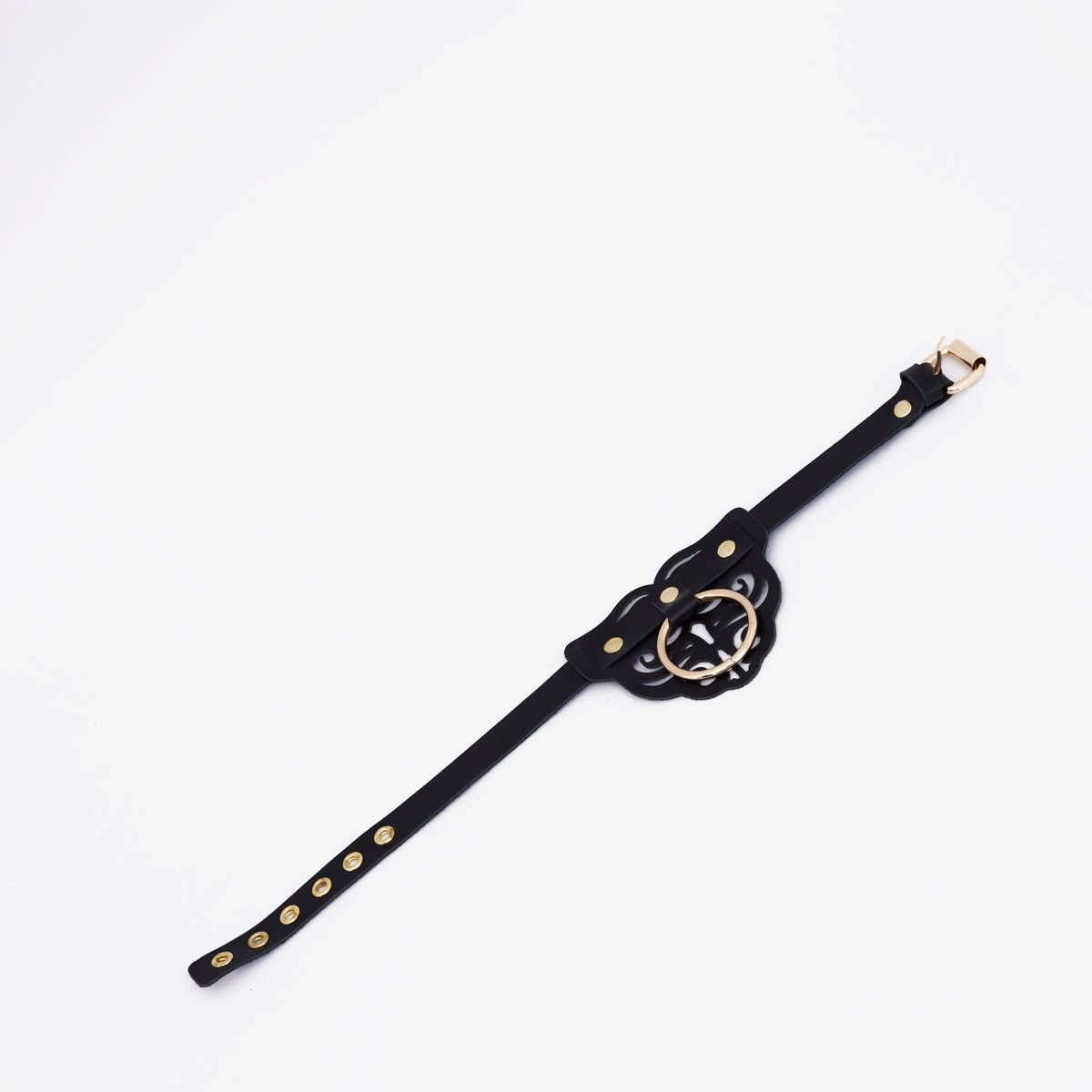 Черный фигурный кожаный ошейник с золотистой фурнитурой
