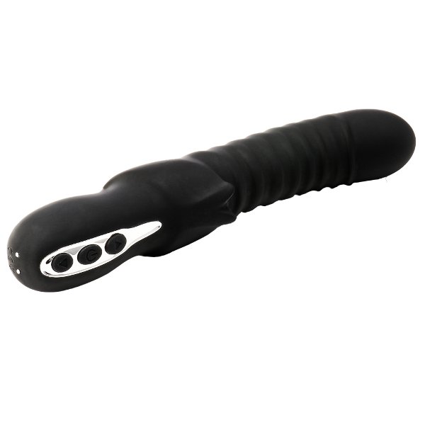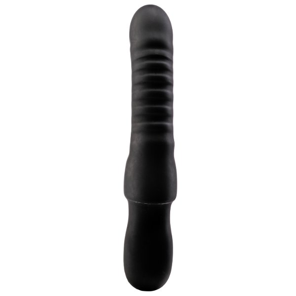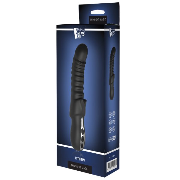 Черный изогнутый вибратор с ребрышками Typhon - 23 см.