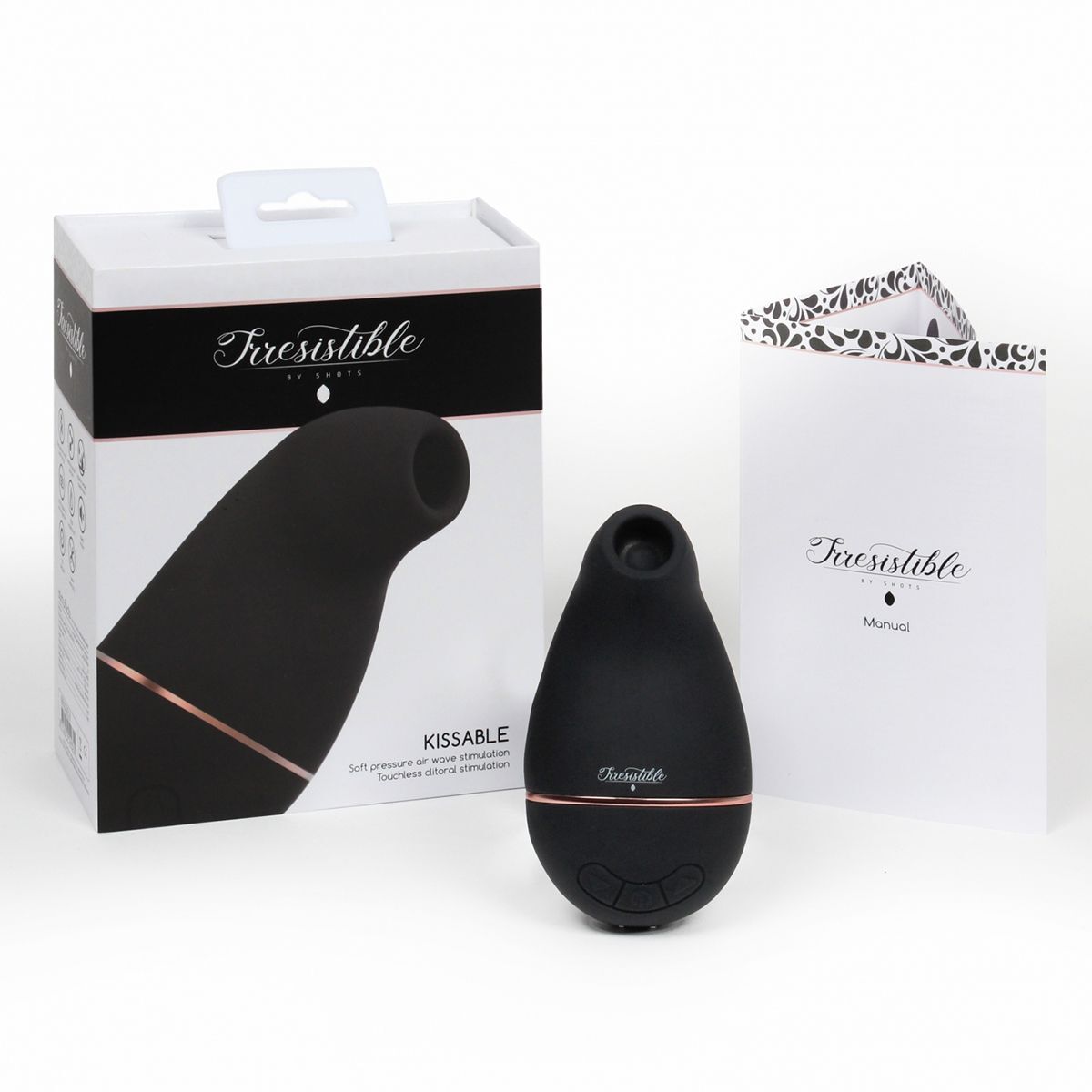 Черный клиторальный вакуум-волновой массажер Irresistible Kissable