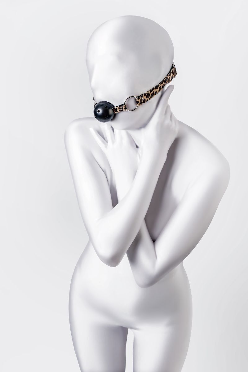 Черный кляп-шар на леопардовых ремешках Anonymo