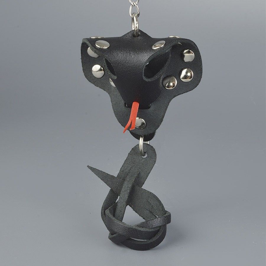 Черный кожаный брелок в форме кобры