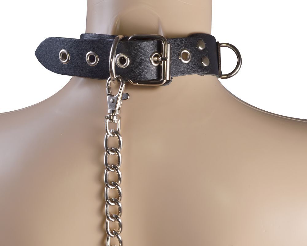 Черный кожаный ошейник Big Ring