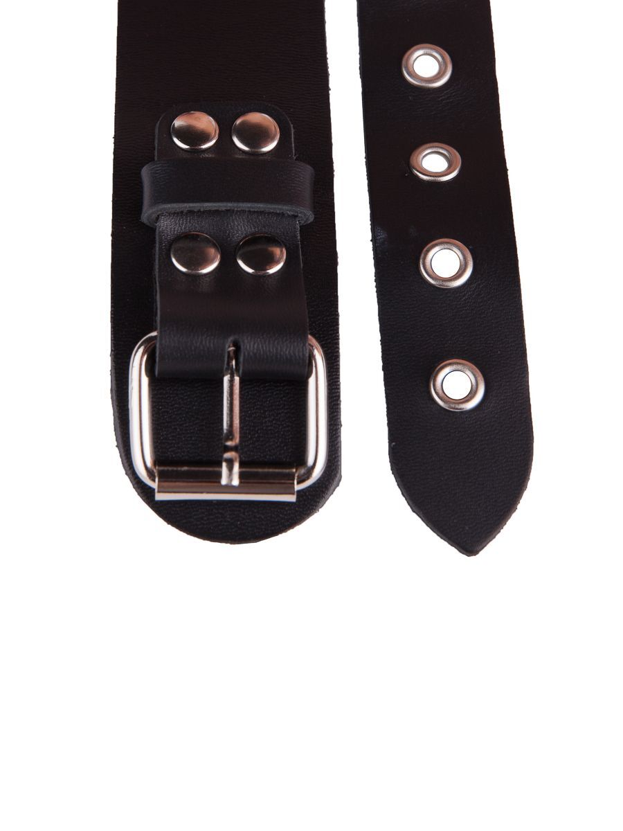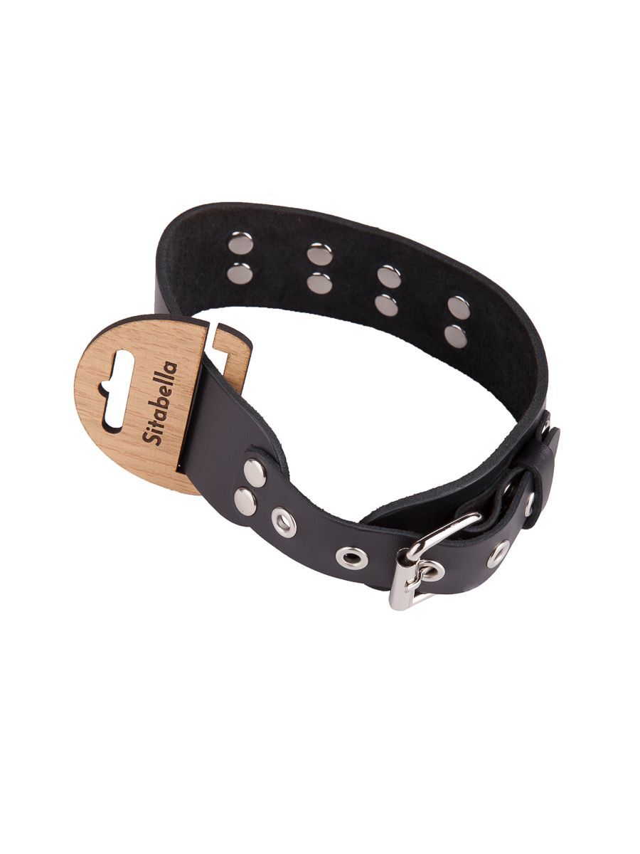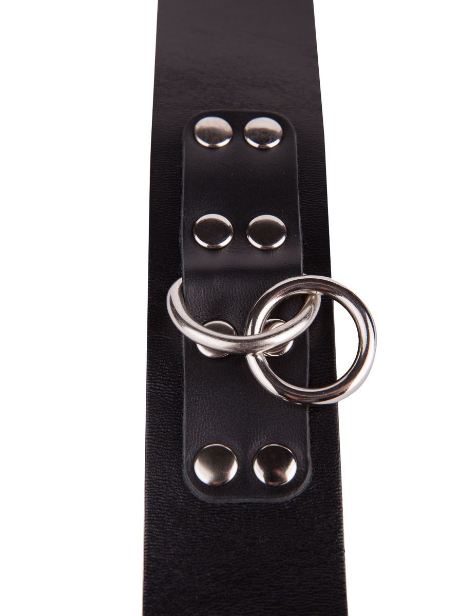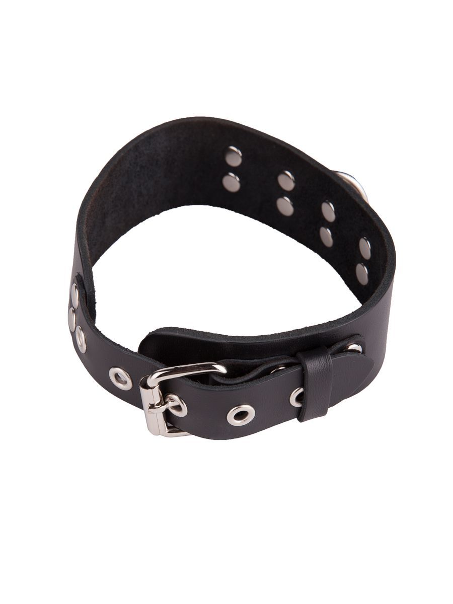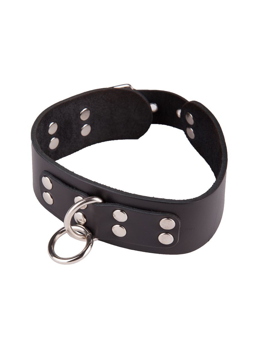 Черный кожаный ошейник с кольцом и клепками