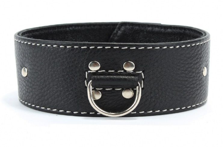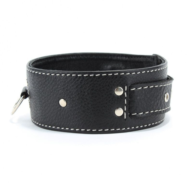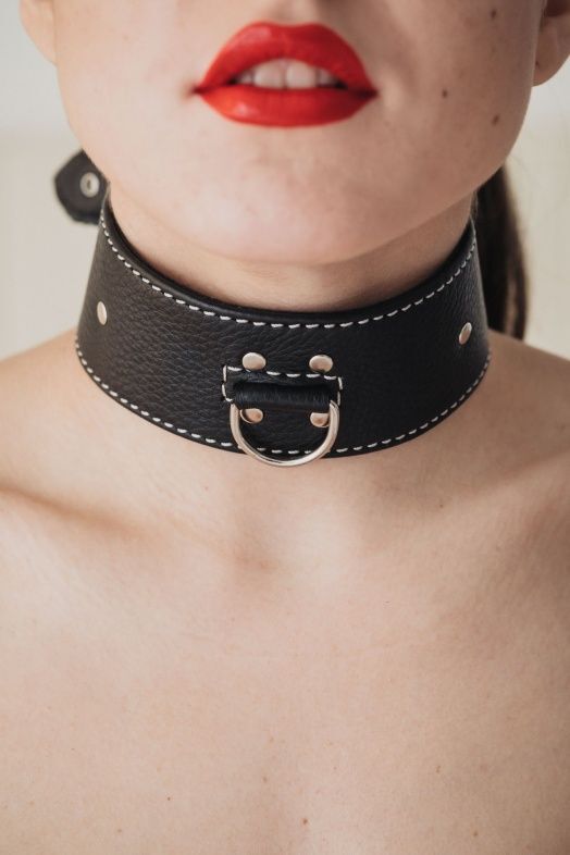 Черный кожаный ошейник с полукольцом для поводка