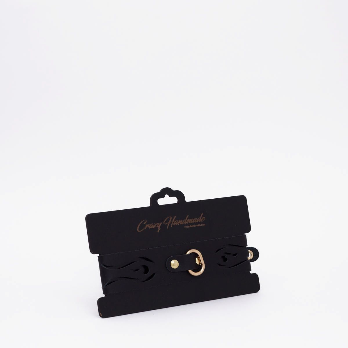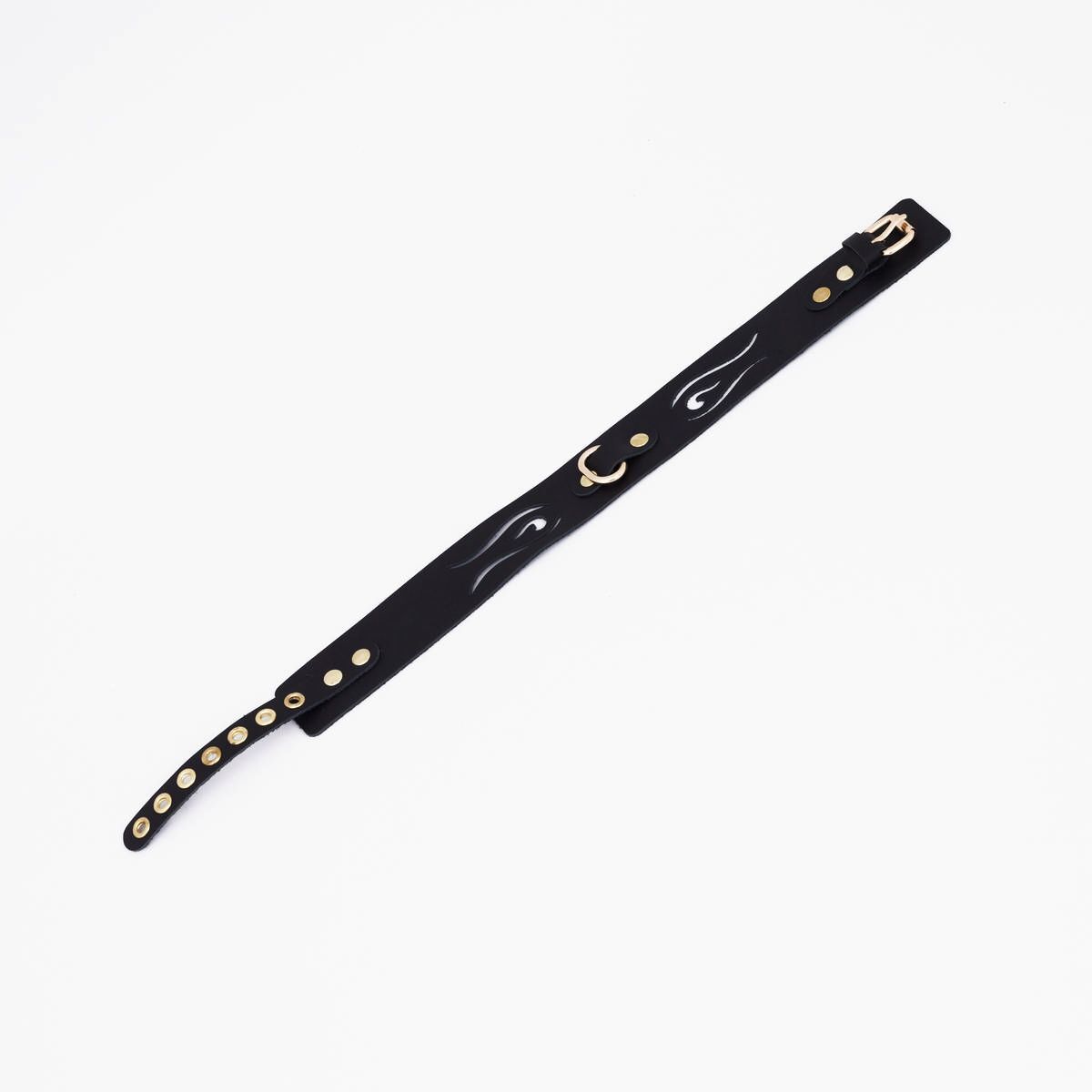 Черный кожаный ошейник с золотистой фурнитурой