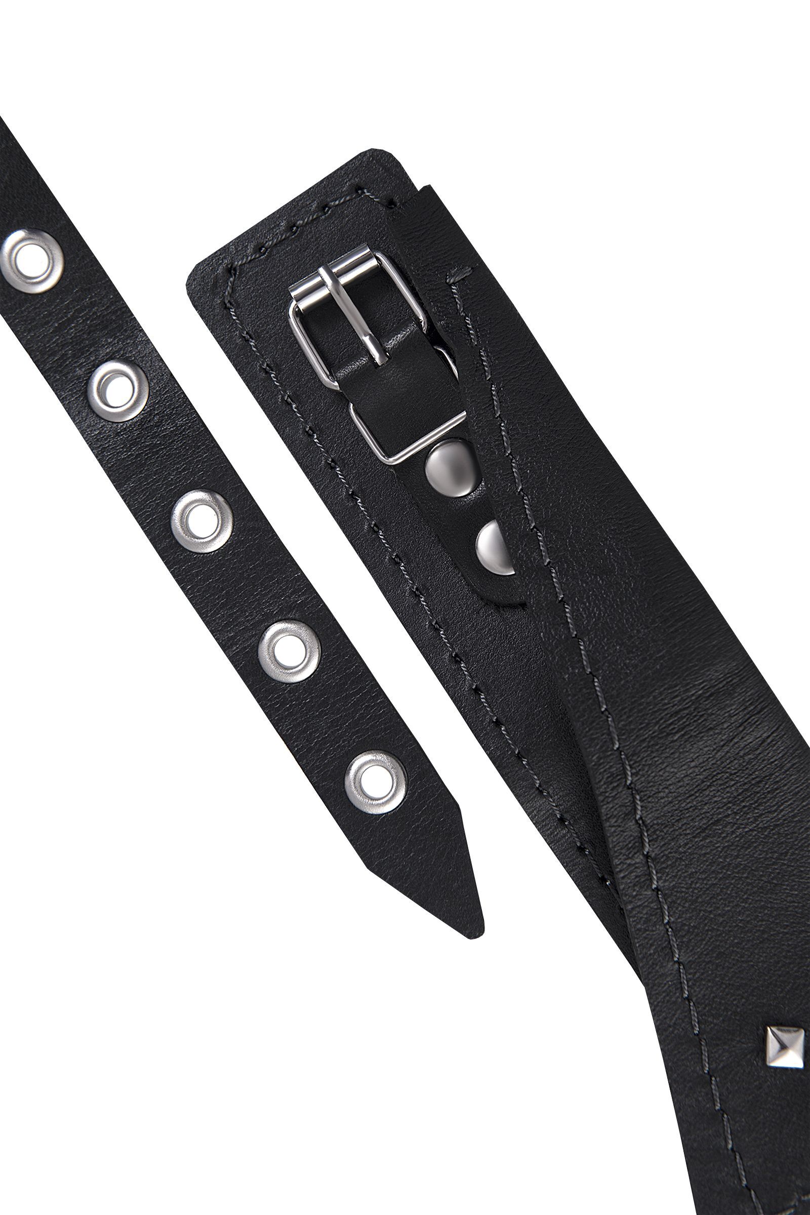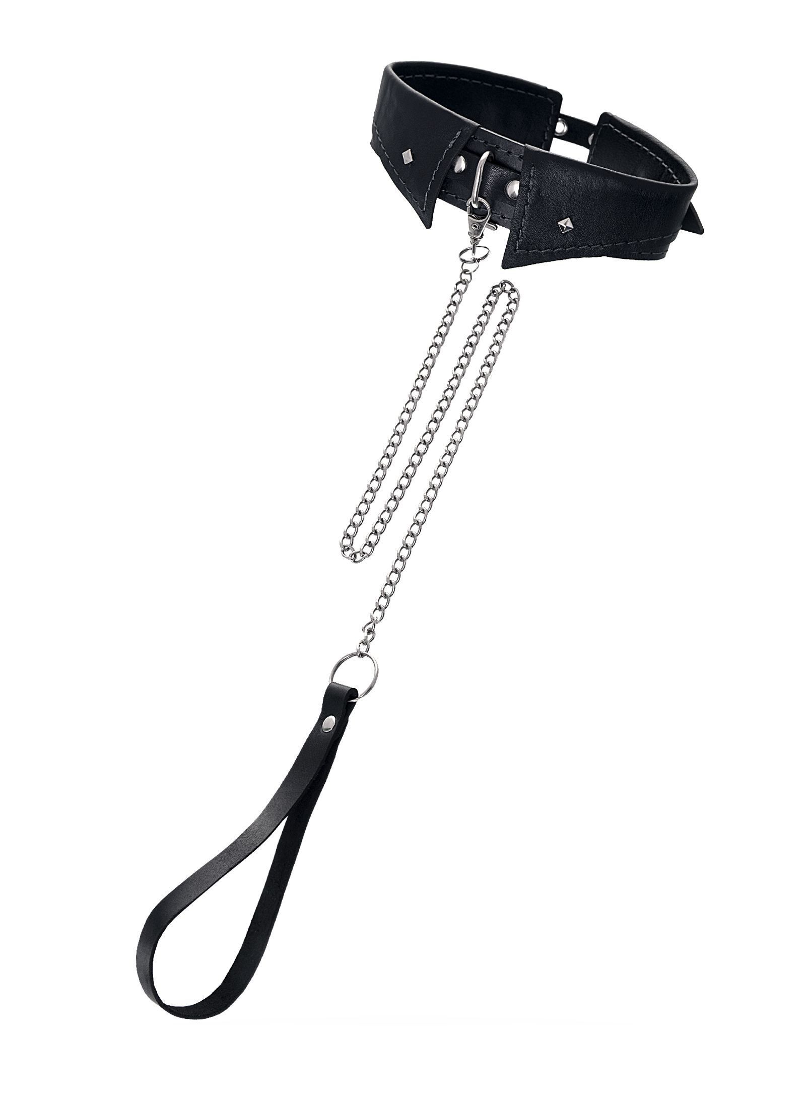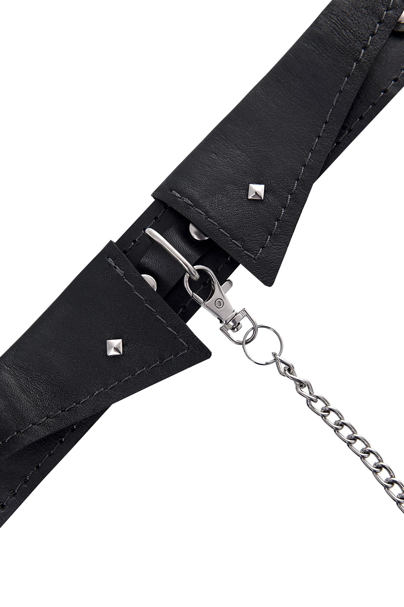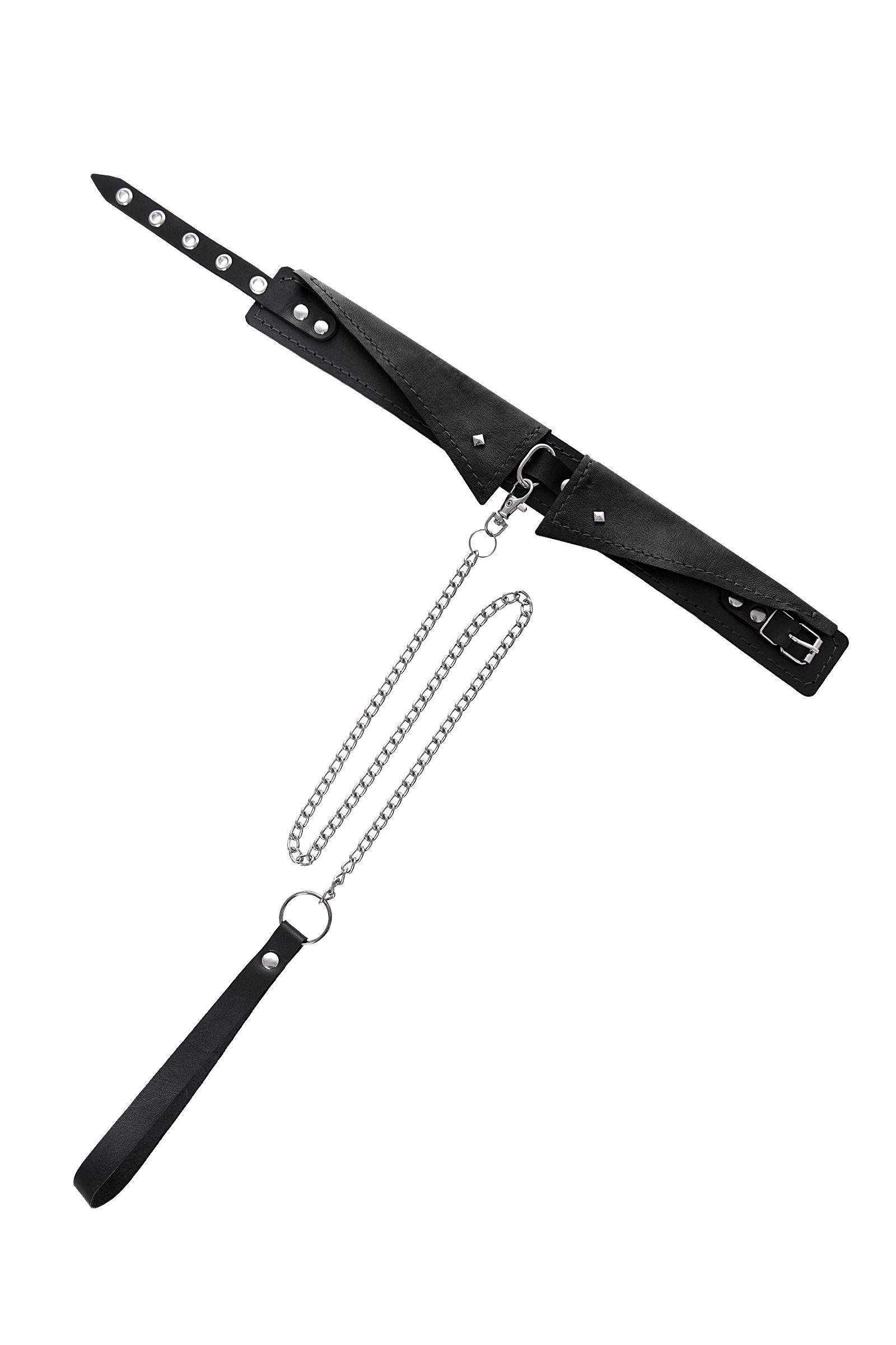 Черный кожаный ошейник-воротник с поводком