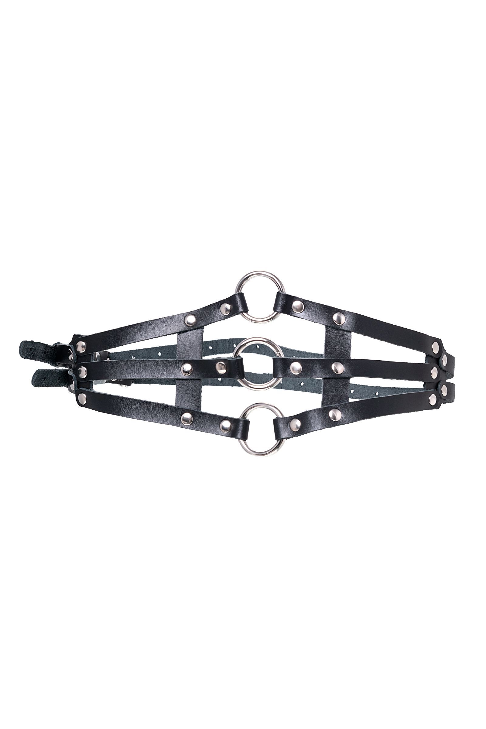 Черный кожаный пояс с кольцами