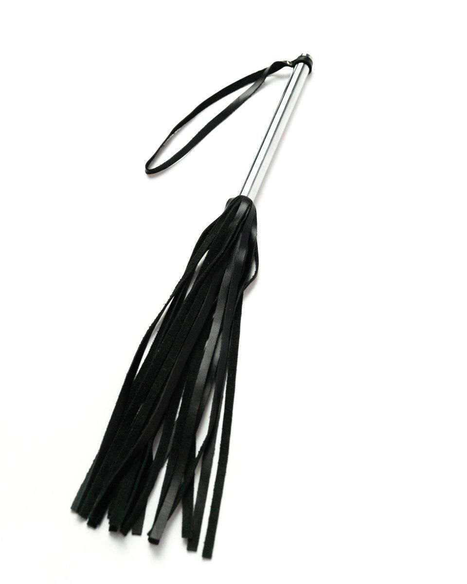 Черный многохвостовый флоггер с металлической рукоятью - 48 см.