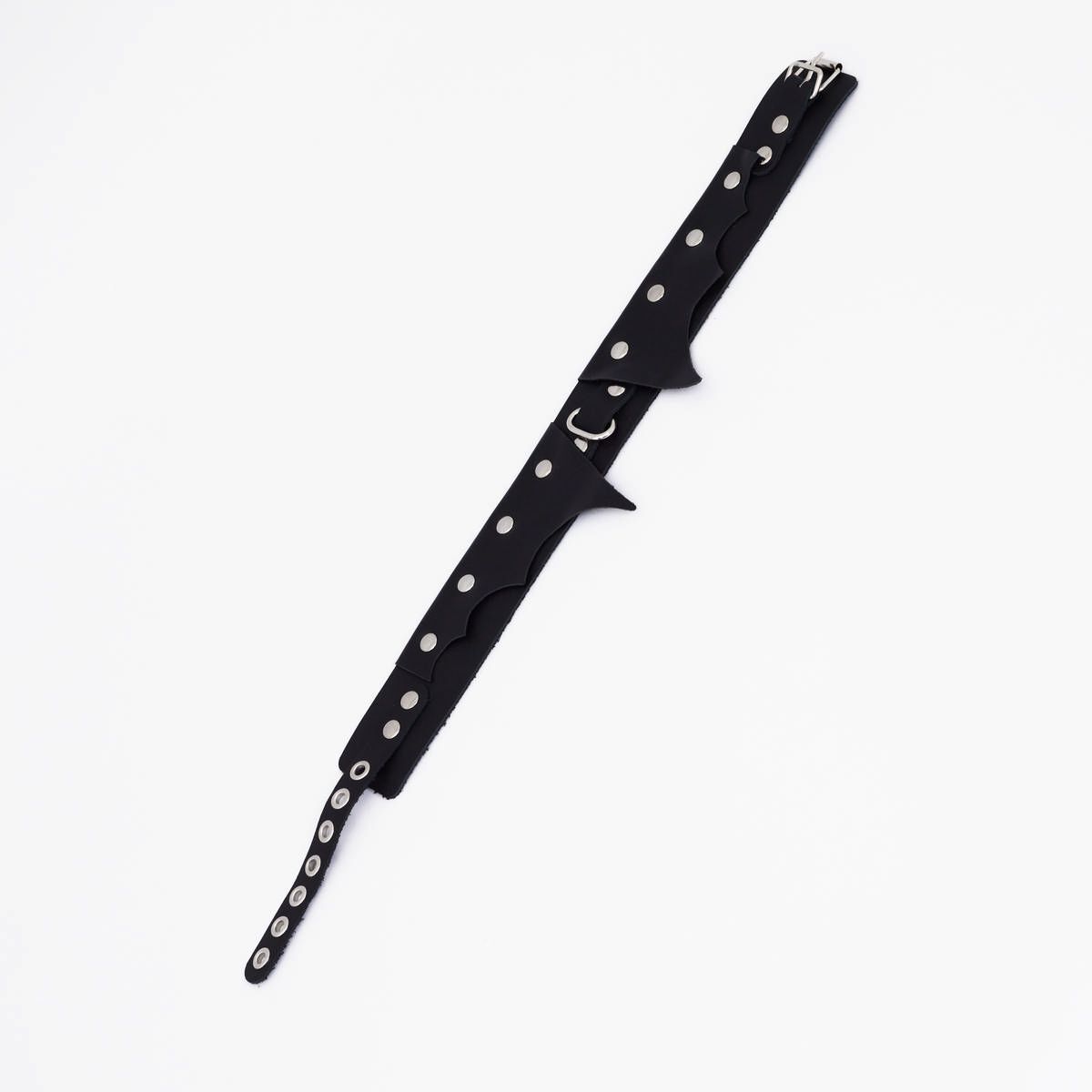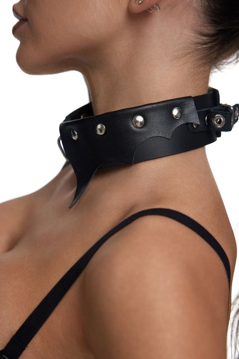 Черный однослойный кожаный ошейник с имитацией фигурного воротничка