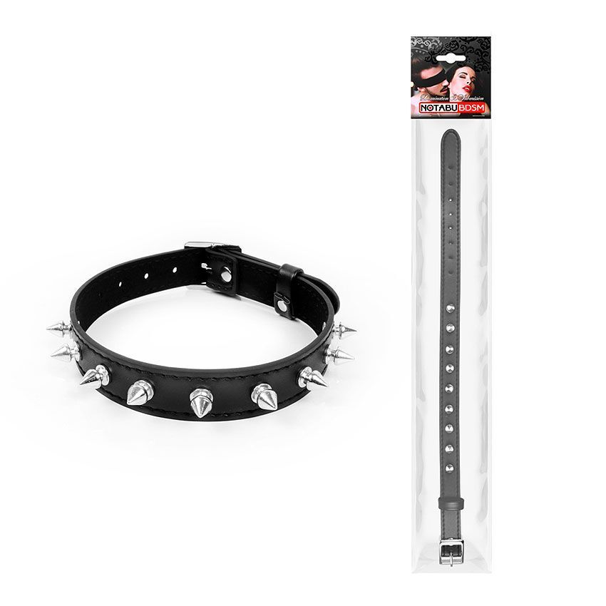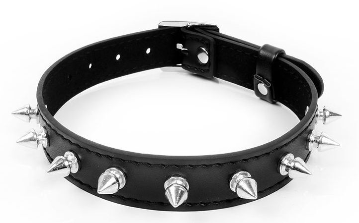 Черный ошейник с серебристыми шипами
