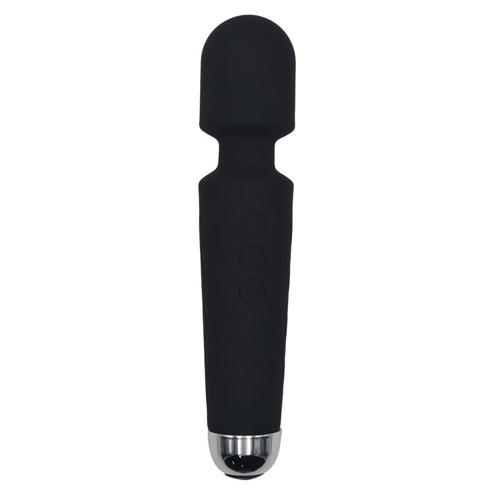 Черный перезаряжаемый wand-вибратор - 20 см.