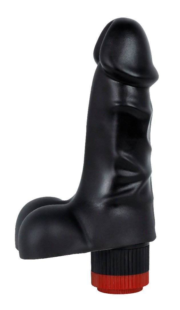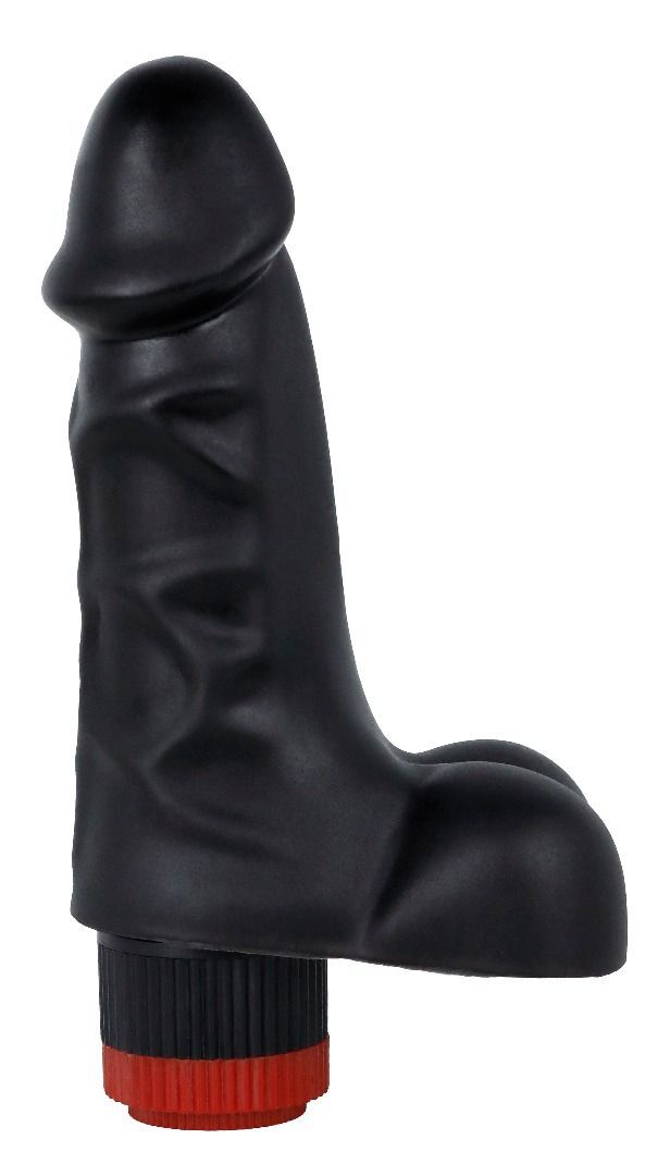 Черный реалистичный вибратор с мошонкой - 16,5 см.