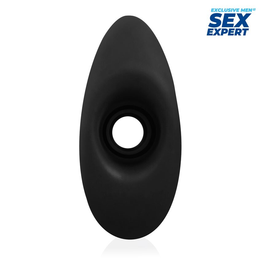 Черный рельефный анальный стимулятор-тоннель - 15,5 см.