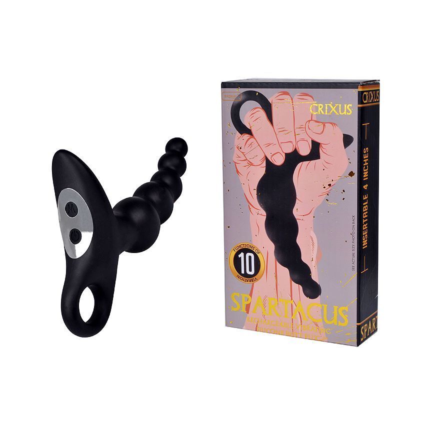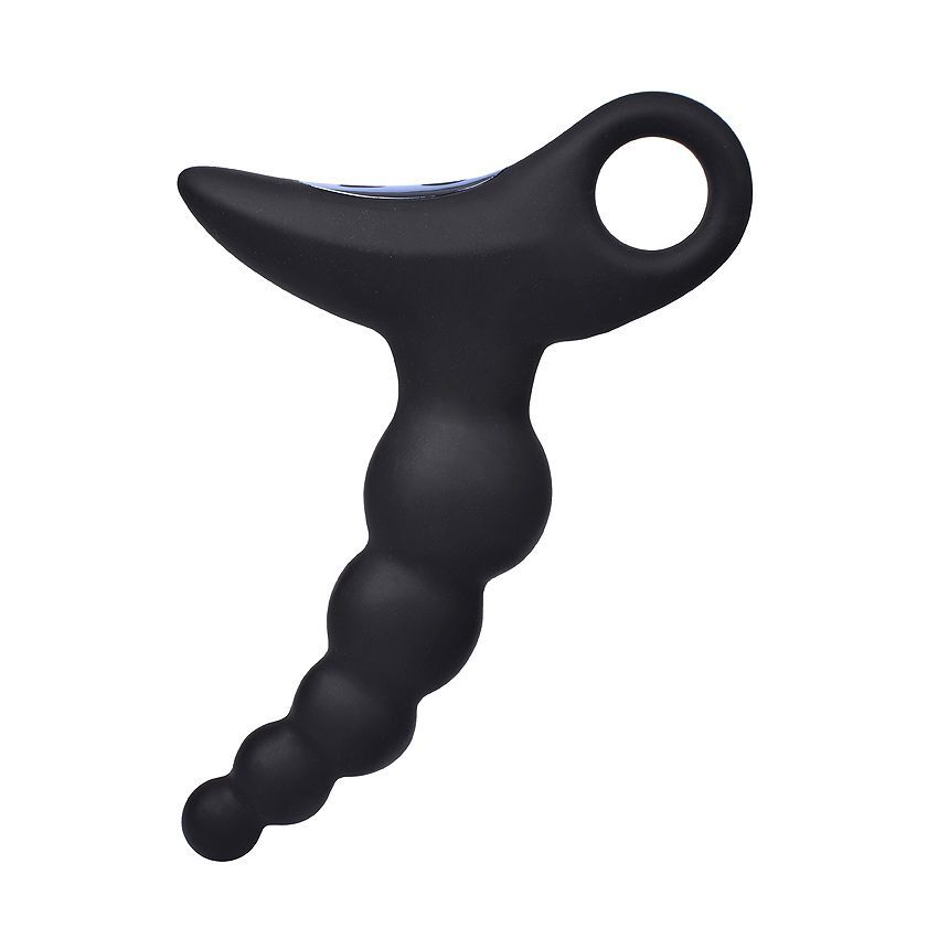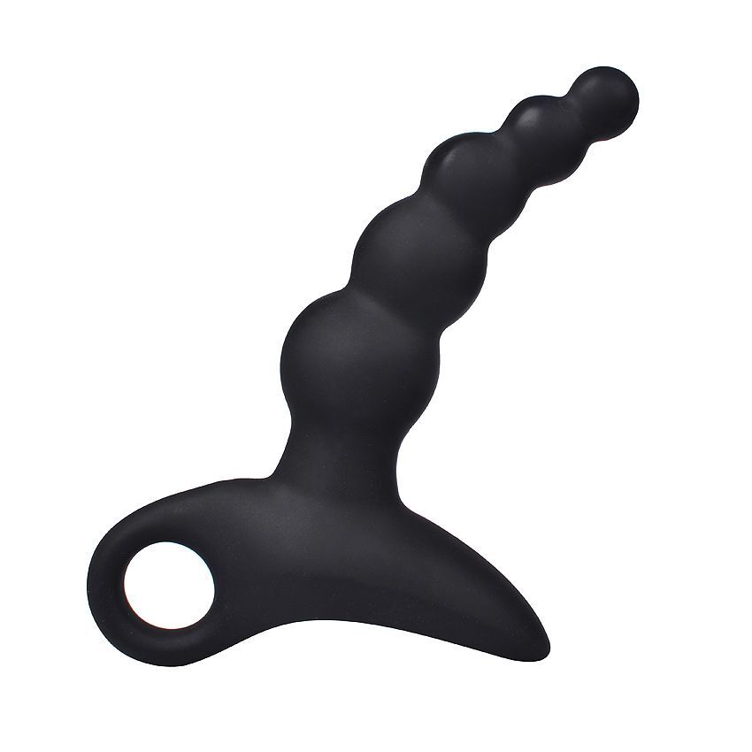 Черный силиконовый анальный вибромассажер-ёлочка с колечком-ограничителем