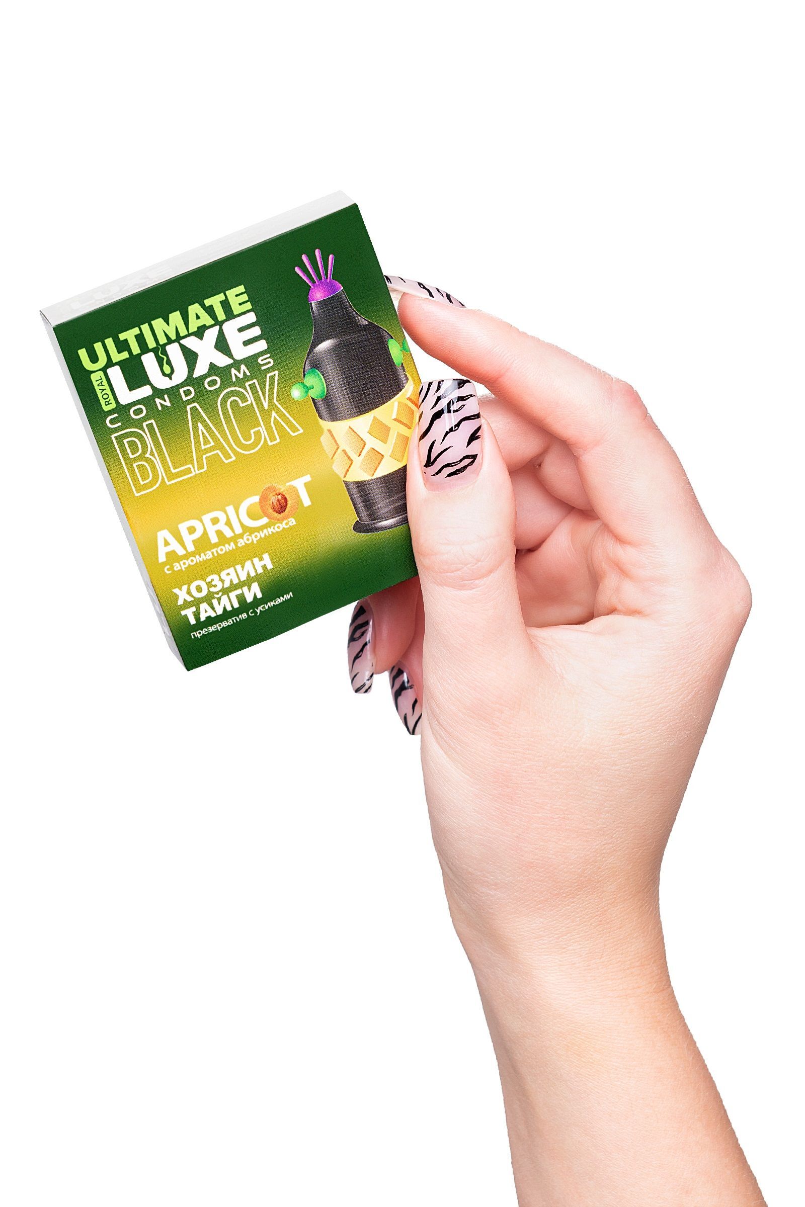 Черный стимулирующий презерватив «Хозяин тайги» с ароматом абрикоса - 1 шт.