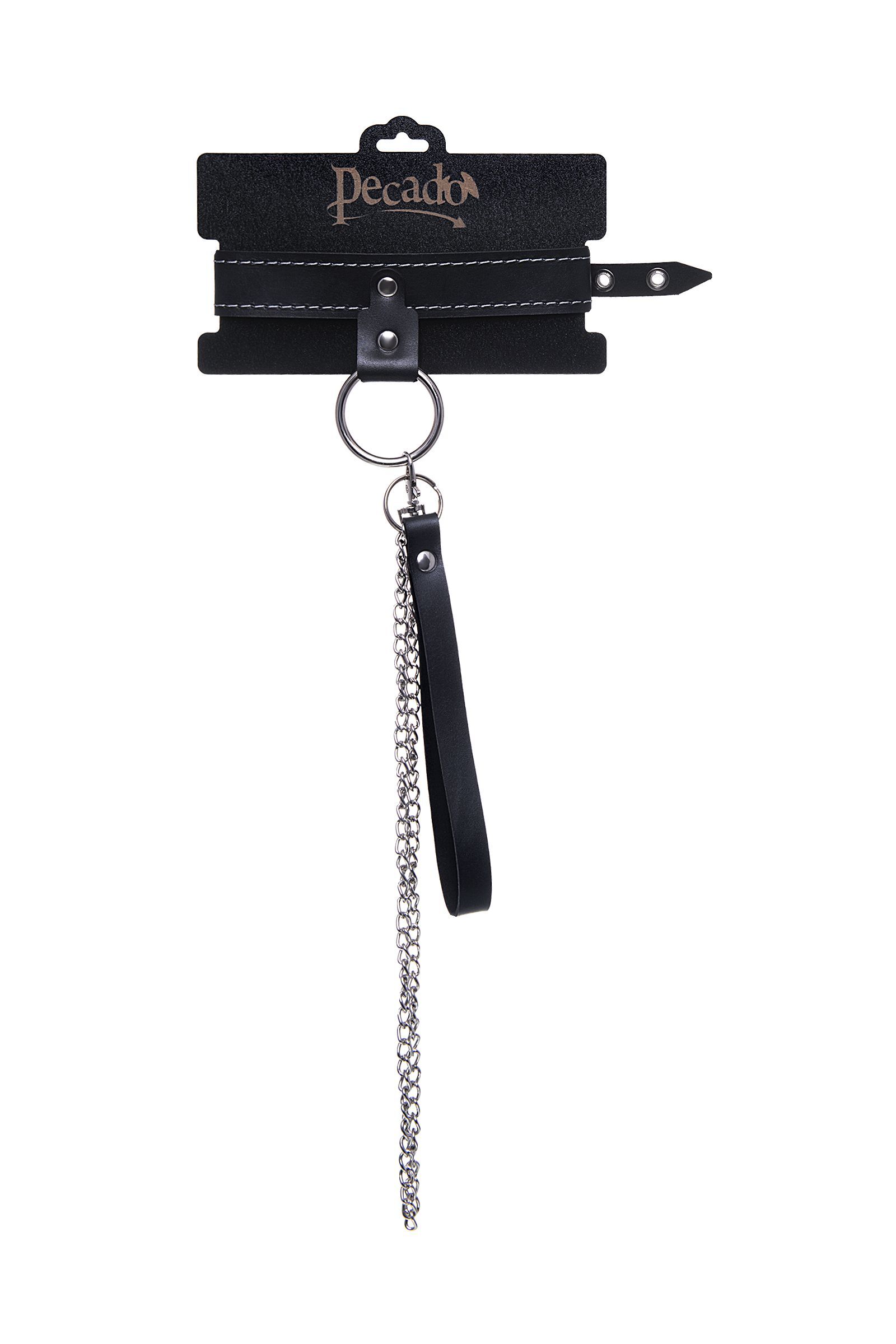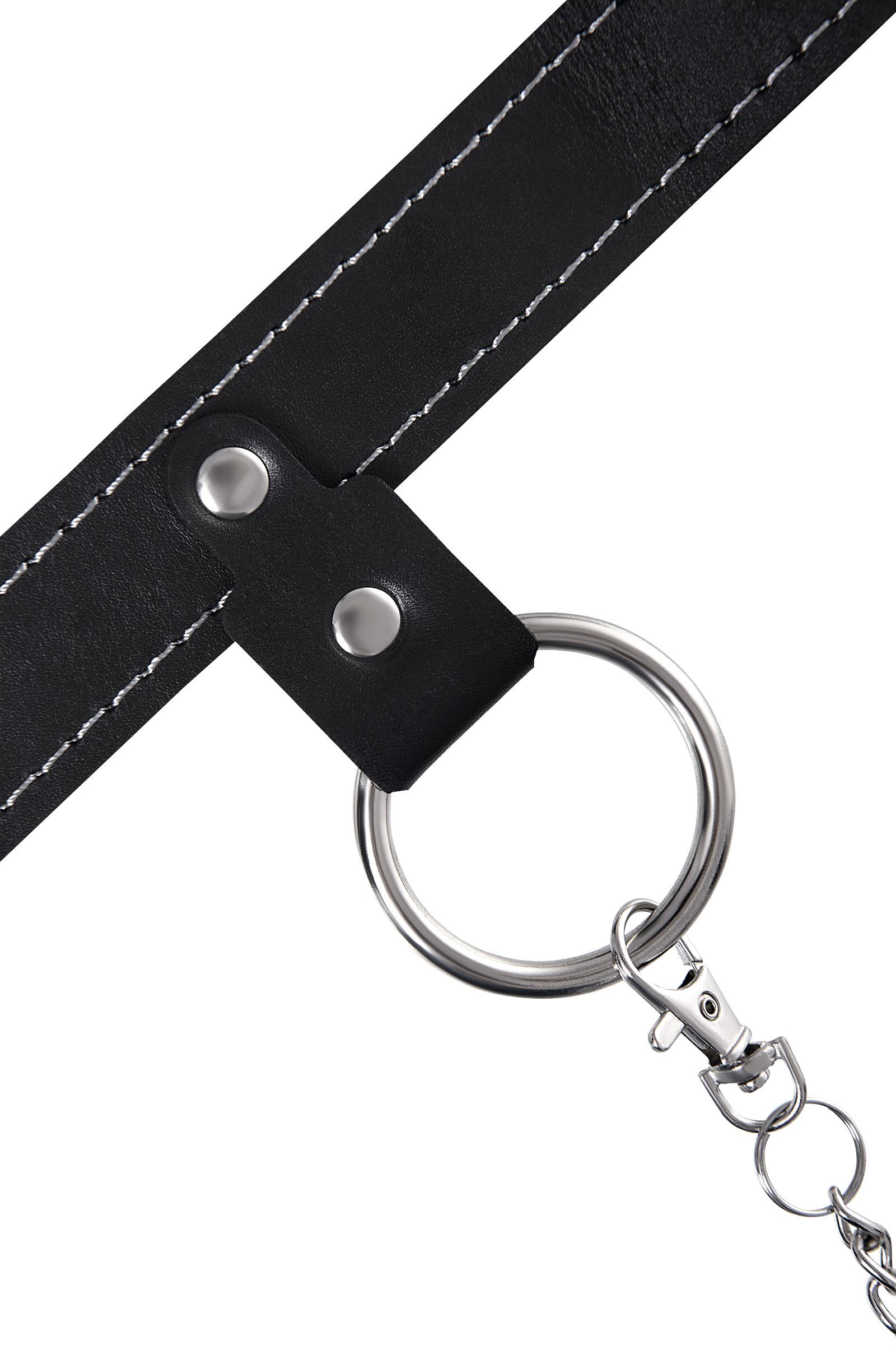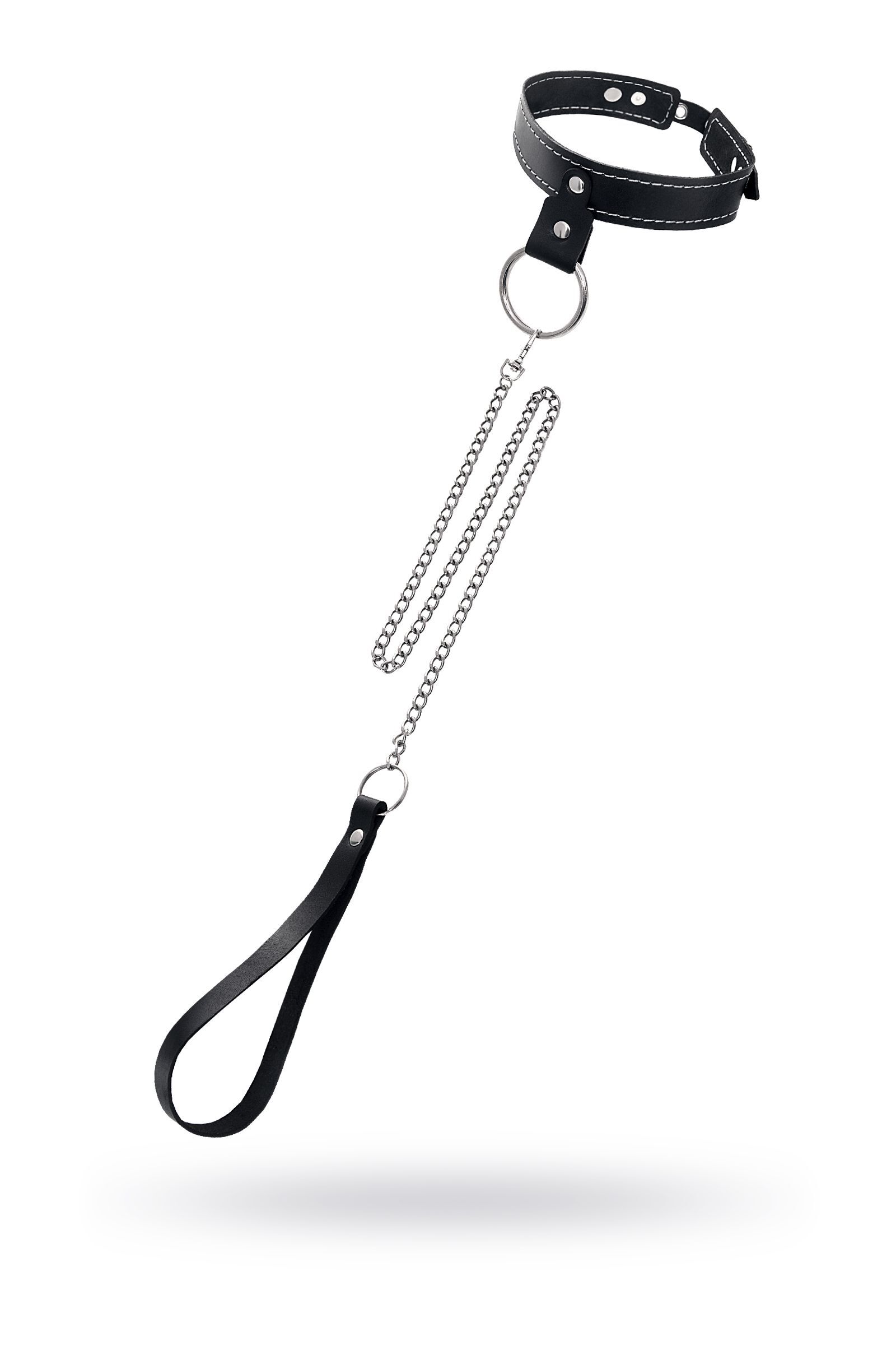 Черный узкий однослойный ошейник с серебристым поводком-цепочкой