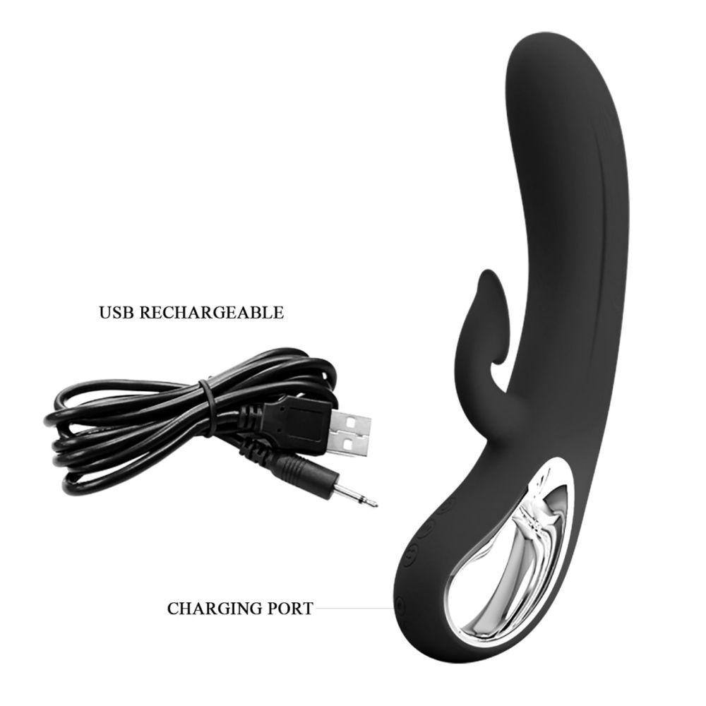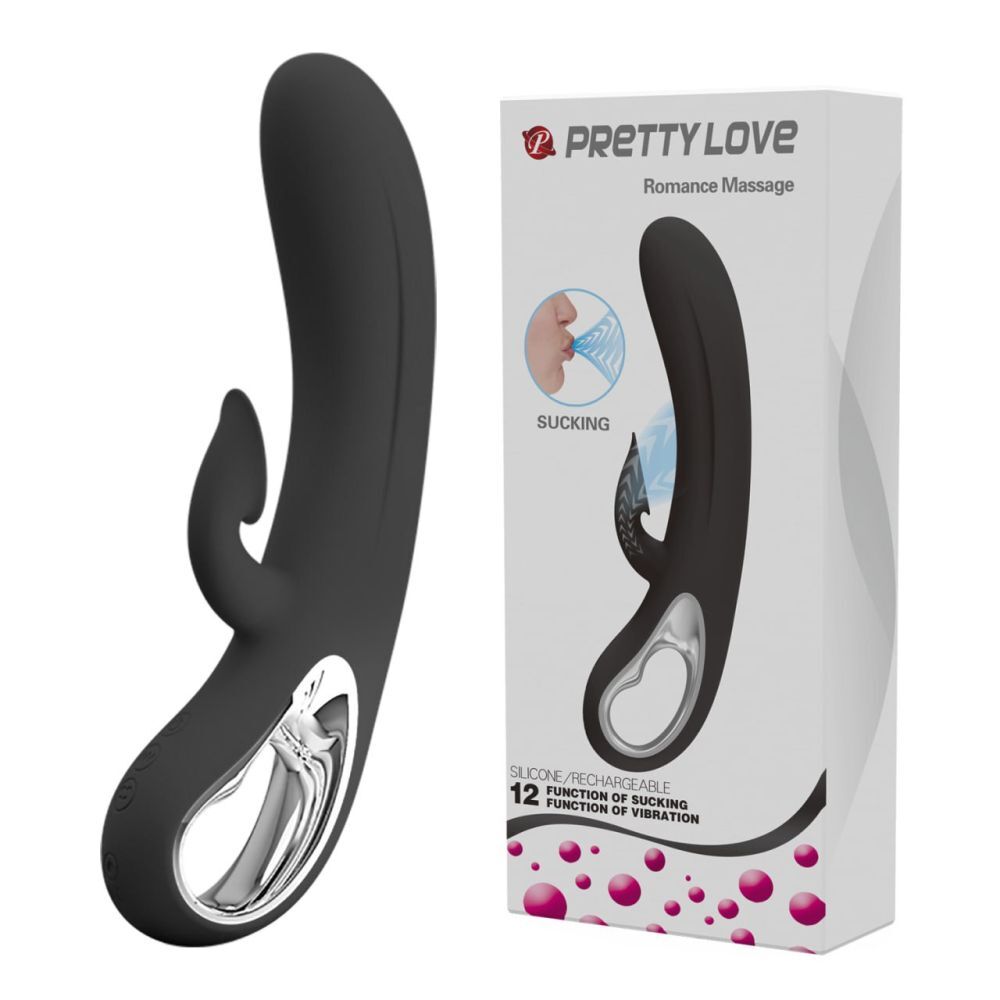 Черный вибратор-кролик Romance Massage - 24 см.