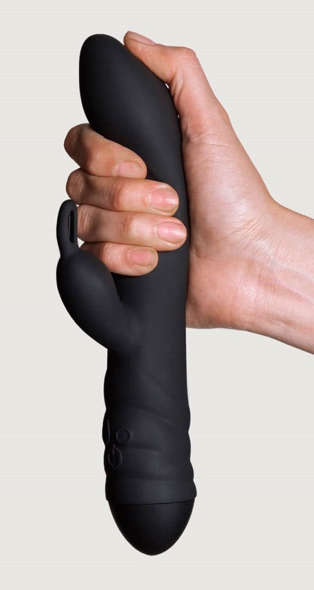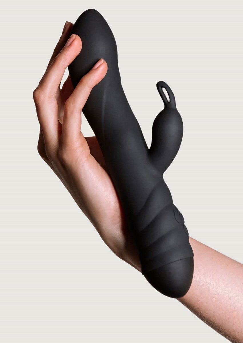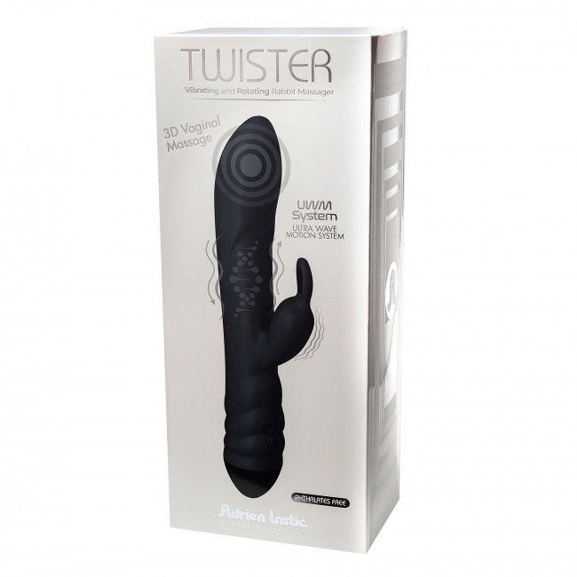 Черный вибратор с клиторальным стимулятором Twister - 23 см.