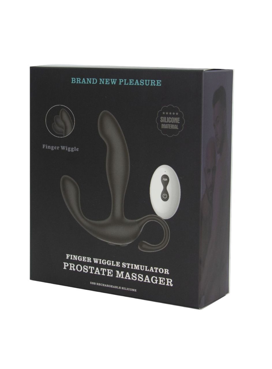 Черный вибромассажер простаты с эффектом фингеринга и пультом ДУ