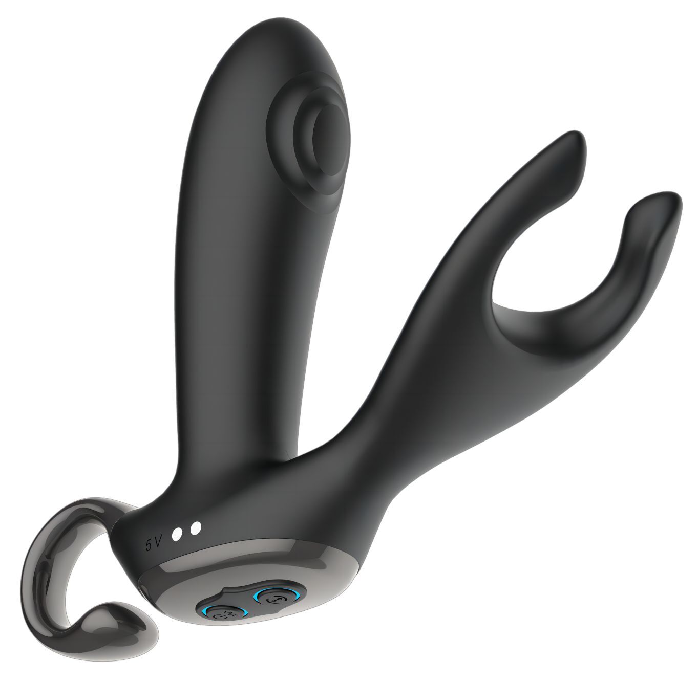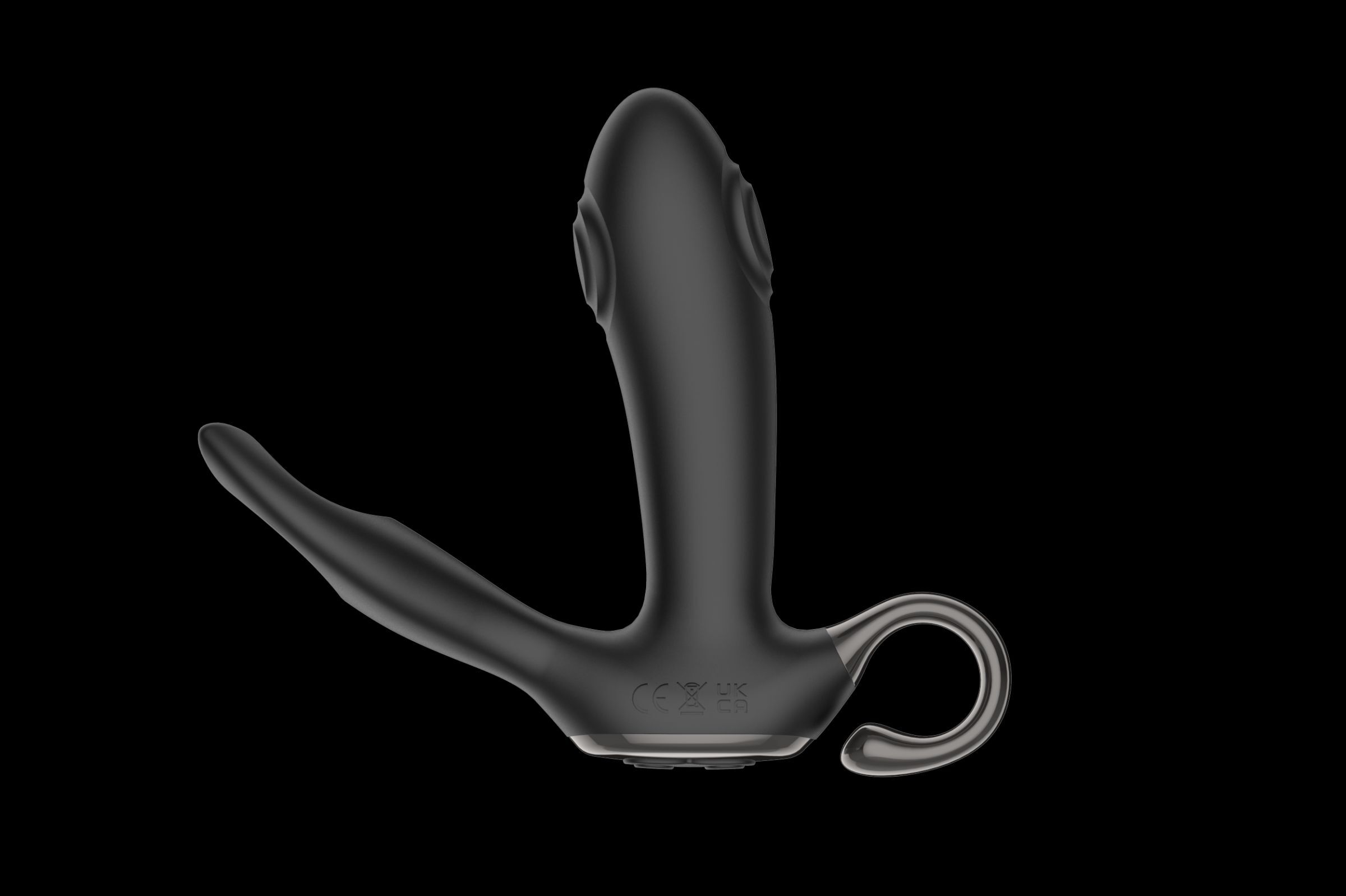 Черный вибромассажер простаты с эффектом маятника и пультом ДУ - 16 см.