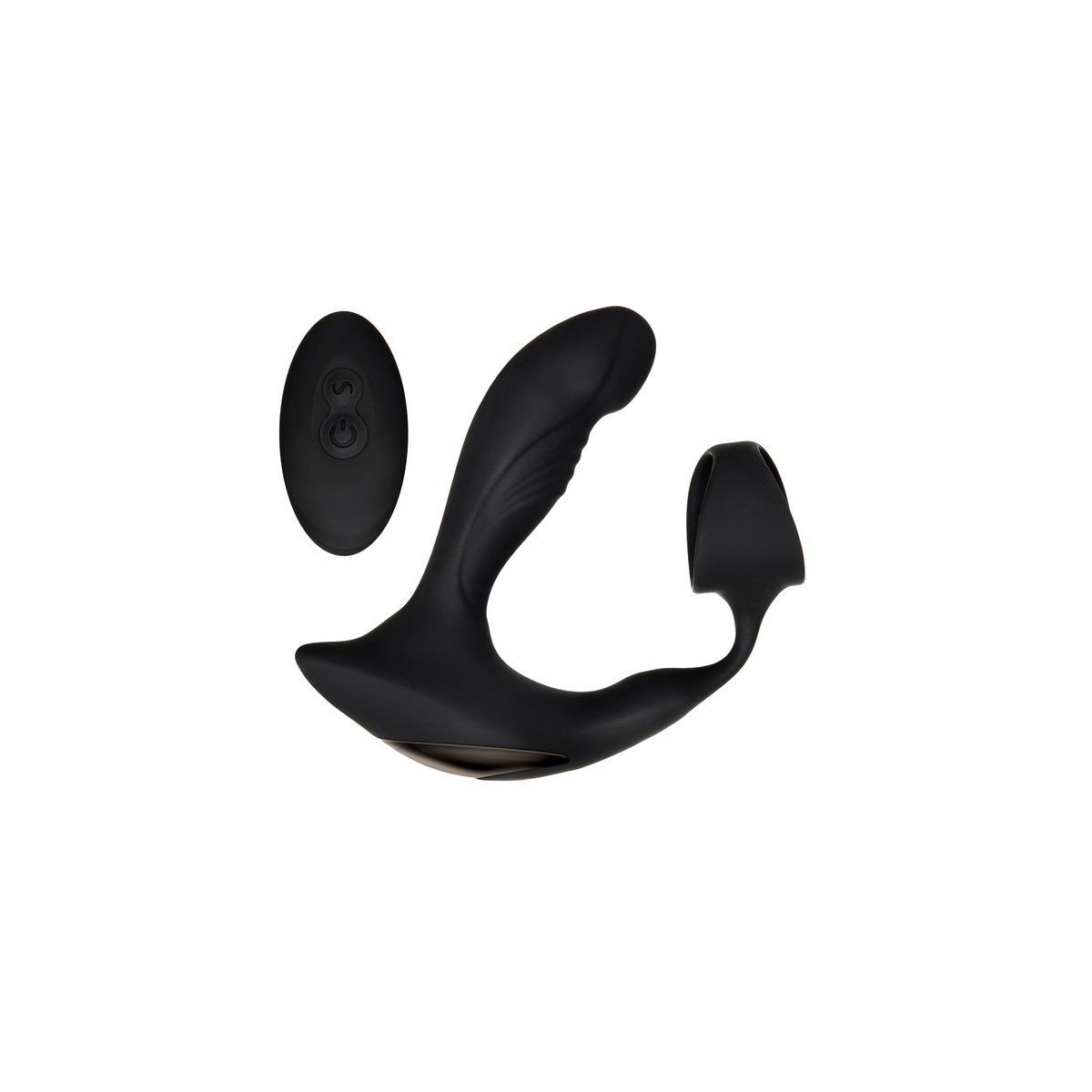 Черный вибромассажер простаты с эрекционным кольцом Strapped & Tapped