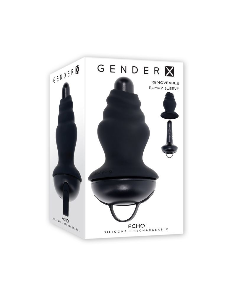 Черный вибростимулятор со съёмной насадкой Echo - 15,3 см.
