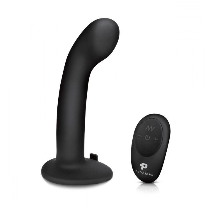 Черный вибрострапон с загнутой головкой Pegasus с пультом ДУ - 15 см.