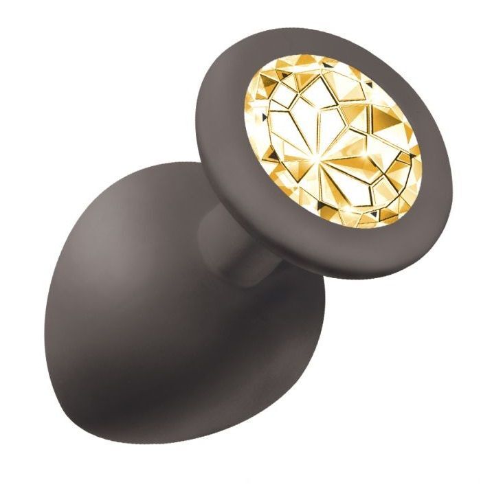 Чёрная анальная пробка Emotions Cutie Large с желтым кристаллом - 10 см.