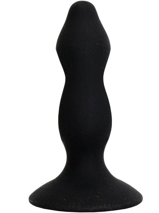 Чёрная анальная пробка с полостями для сжатия и легкого введения - 11 см.