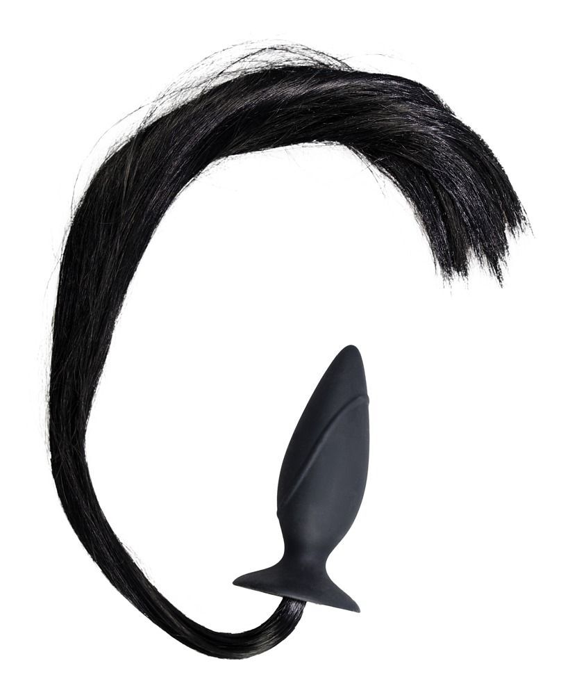 Чёрная анальная втулка с хвостом HORNY Pony - 12,5 см.
