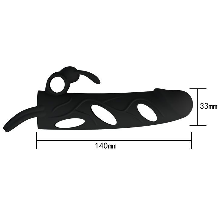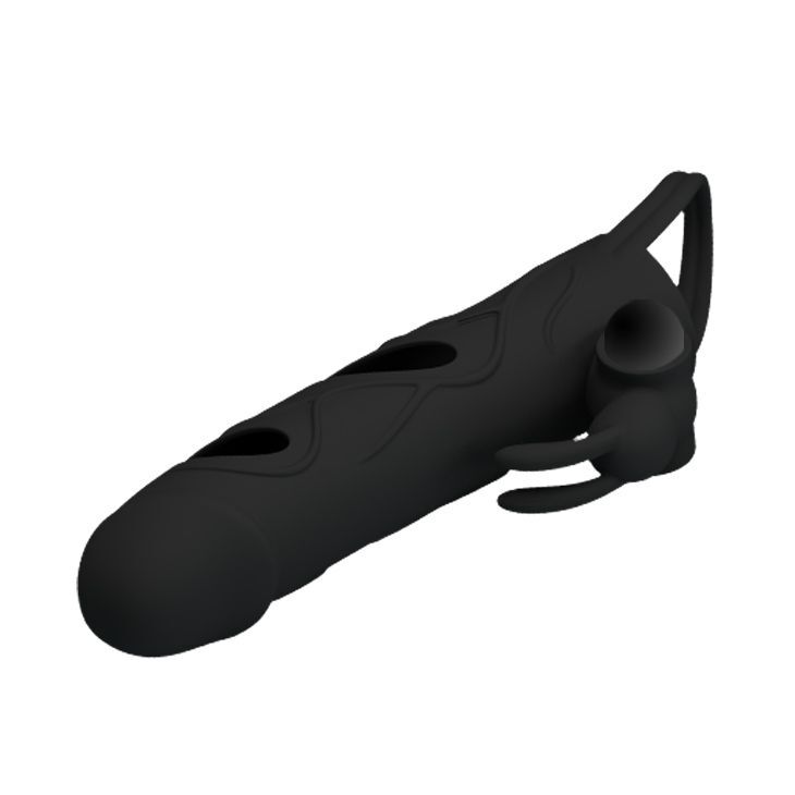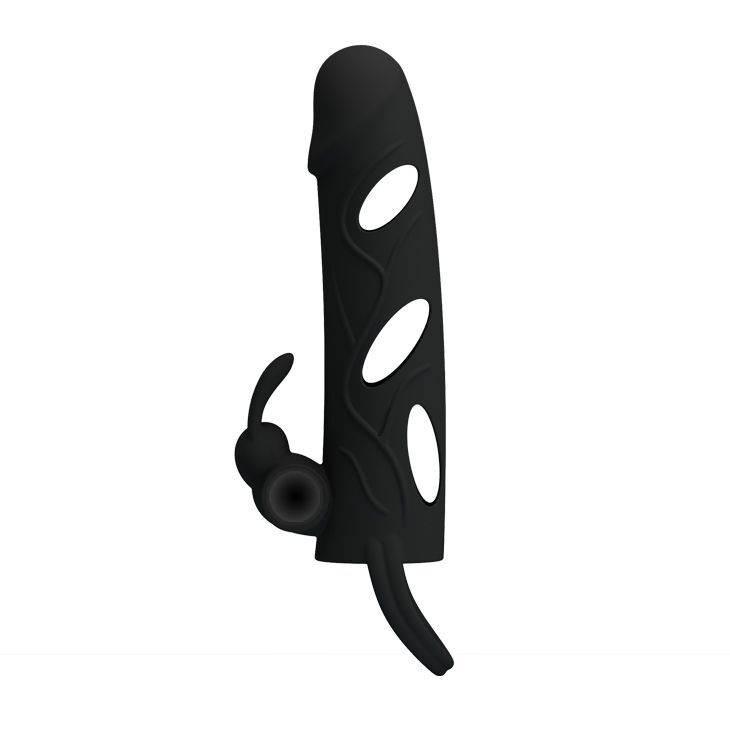 Чёрная насадка с клиторальным вибростимулятором и закрытой головкой - 14 см.