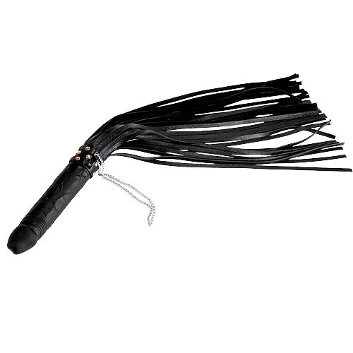 Чёрная плеть Ракета с рукоятью из латекса и хвостами из кожи - 65 см.