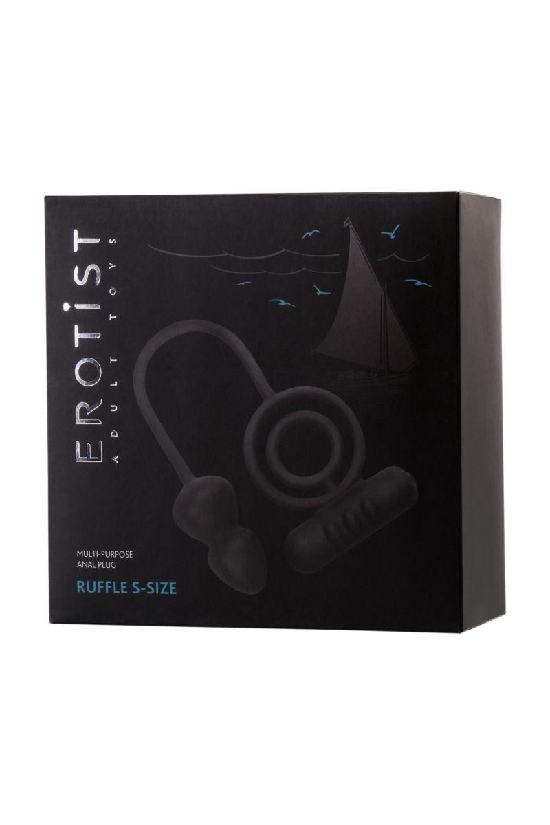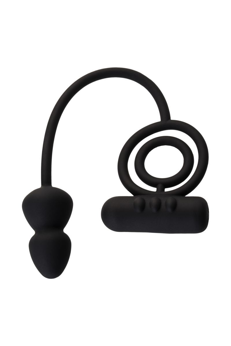 Чёрное эрекционное кольцо с вибропулькой и анальным хвостом