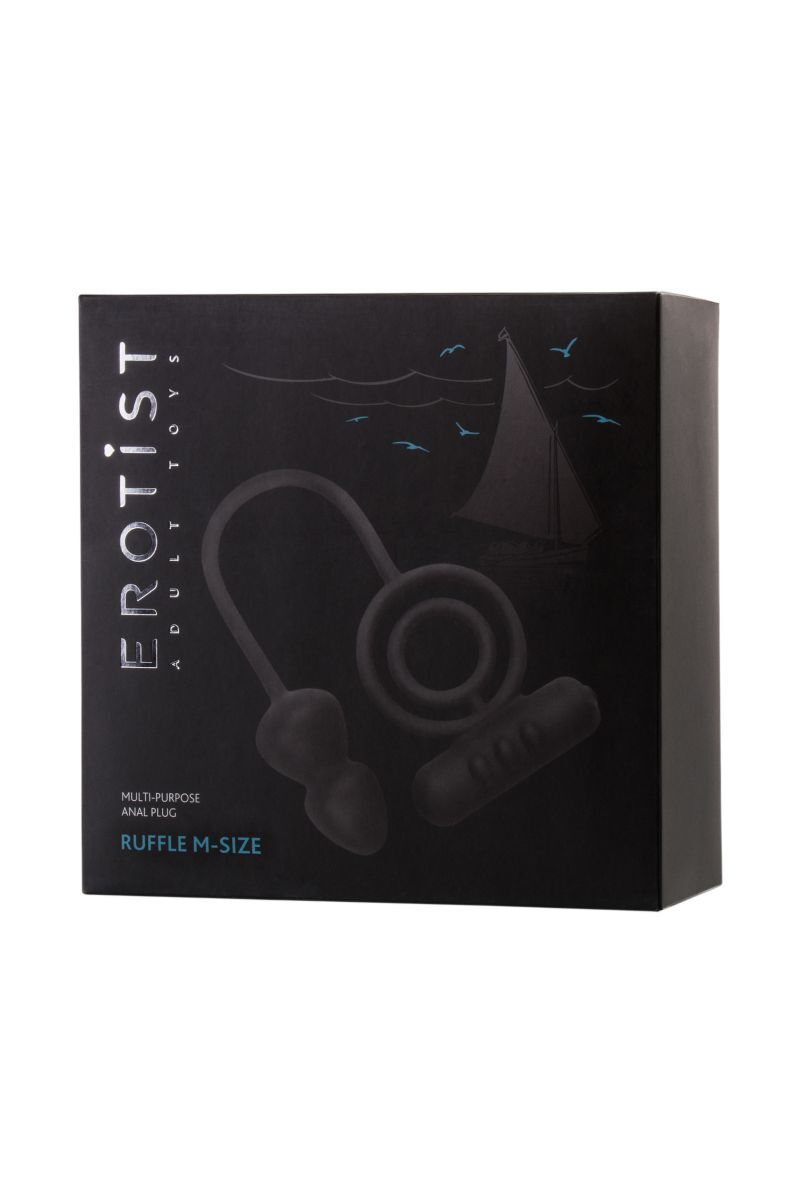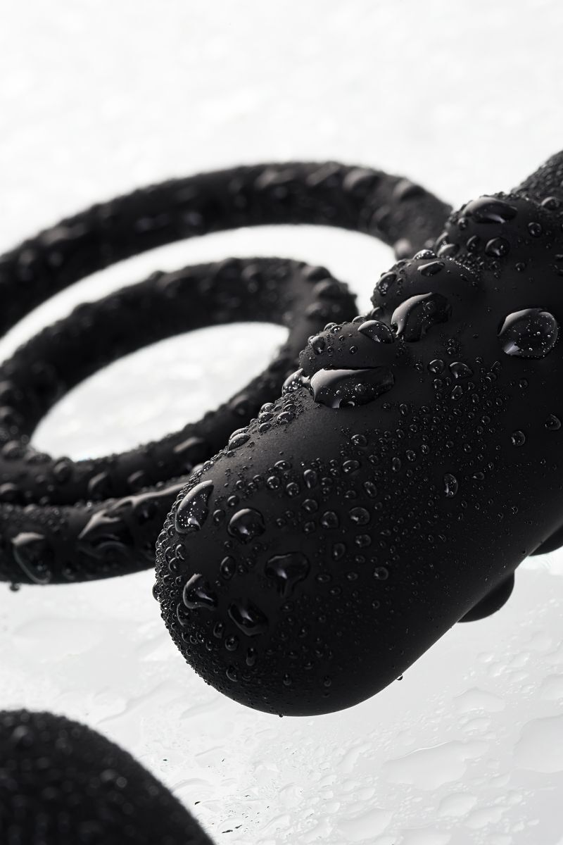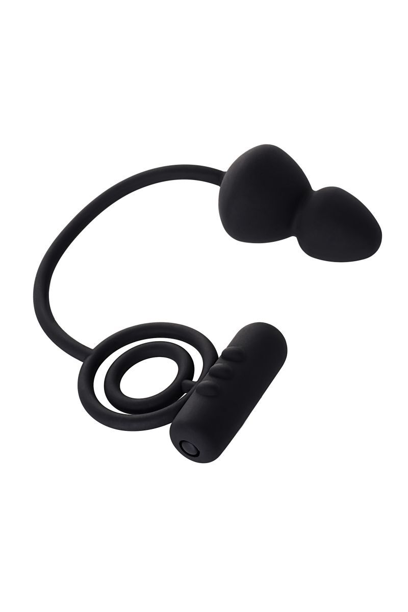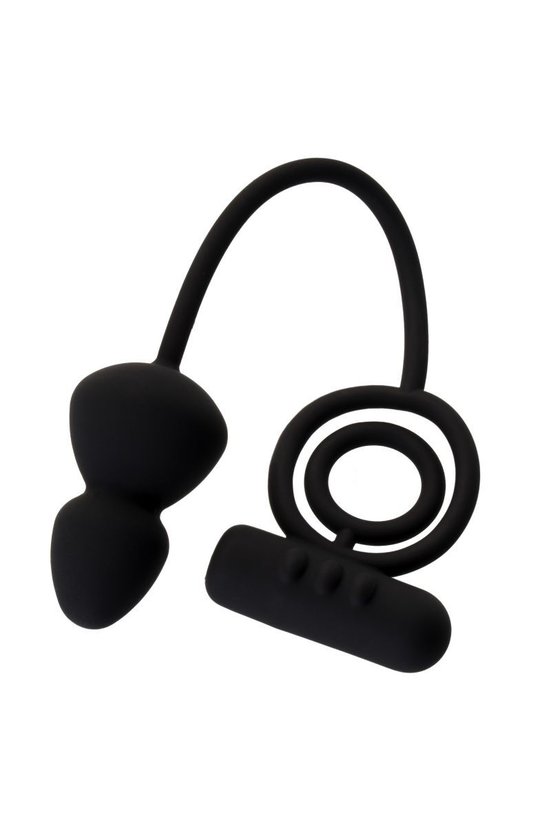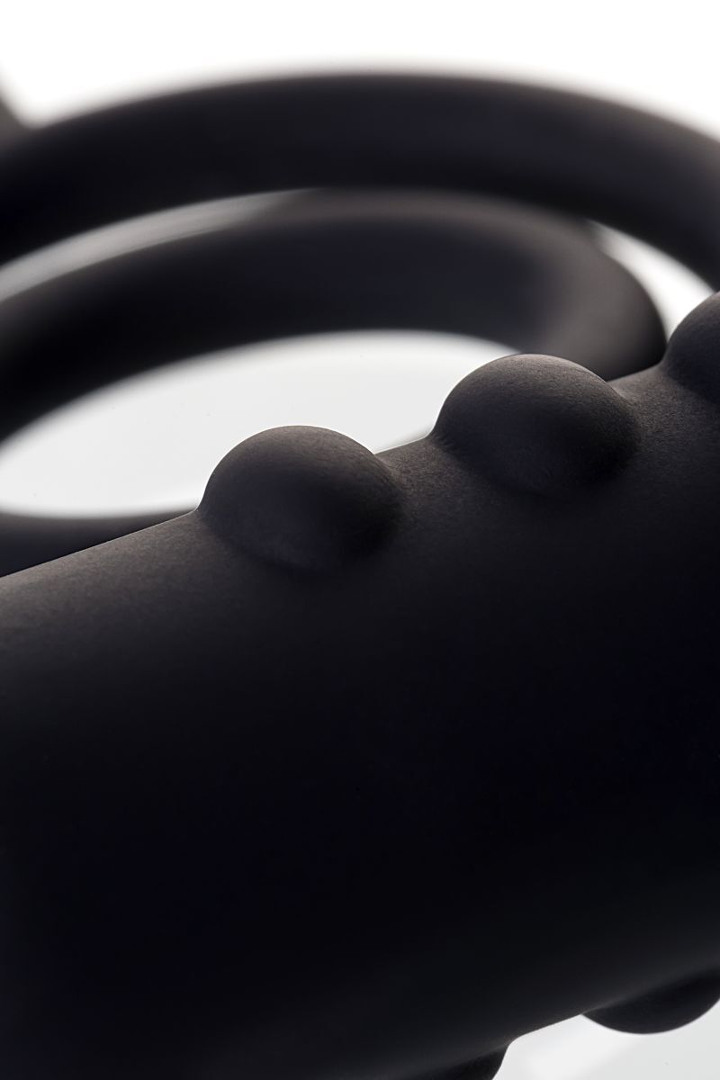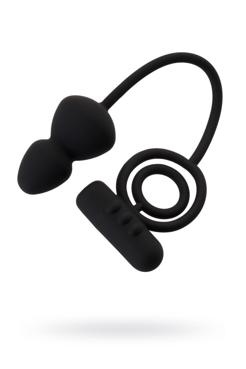 Чёрное эрекционное кольцо с вибростимулятором и анальным хвостом