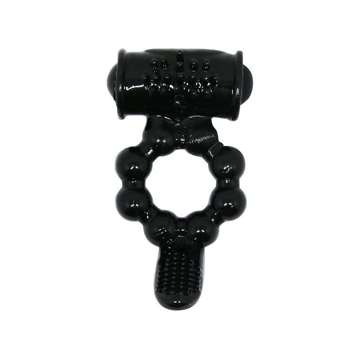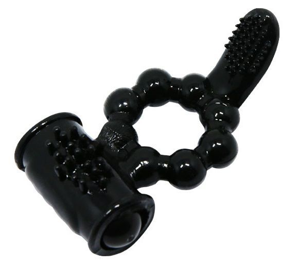 Чёрное эрекционное виброкольцо с щеточкой
