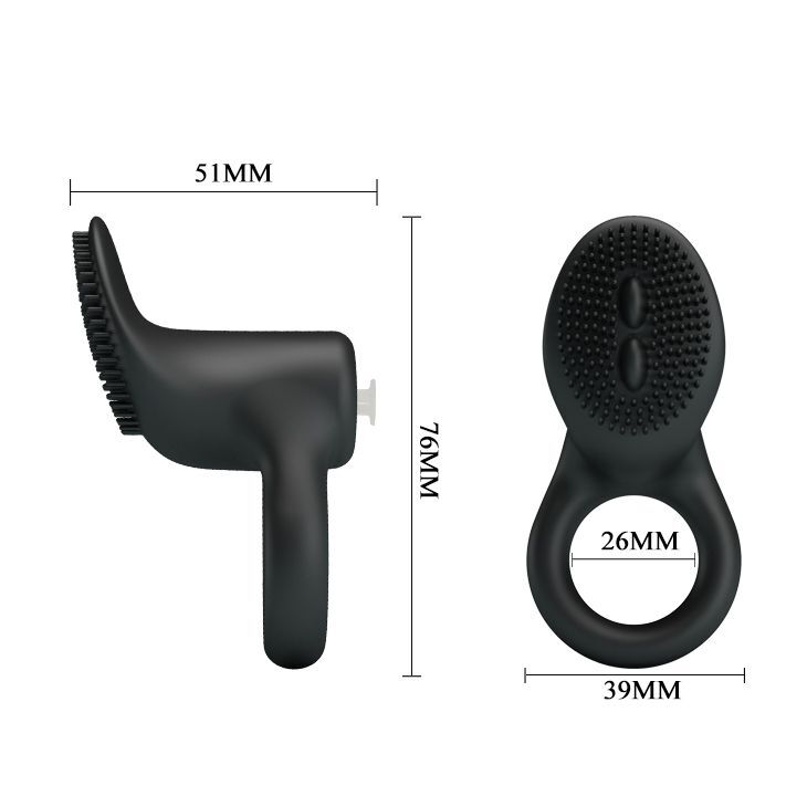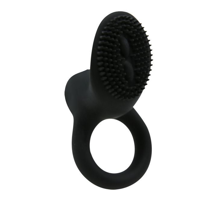 Чёрное эрекционное виброкольцо со стимулятором клитора Cobra