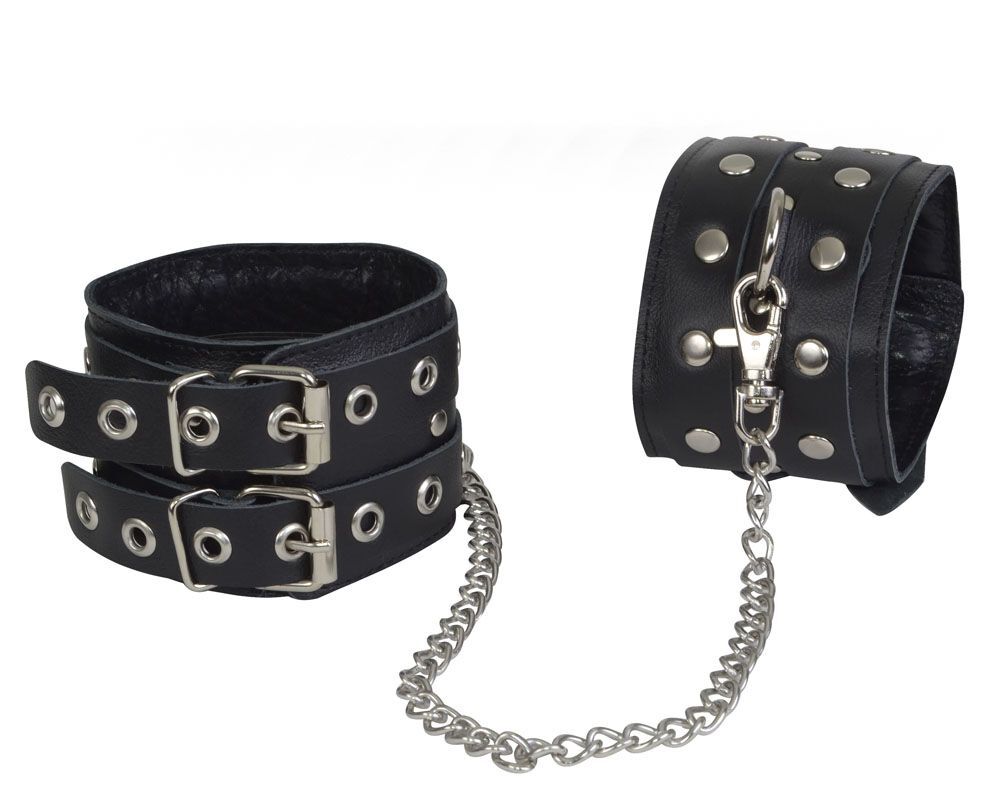 Чёрные кожаные оковы, соединенные цепочкой