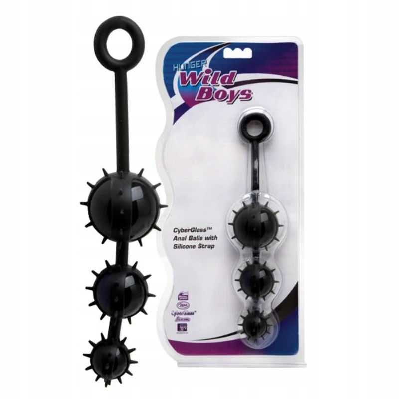 Чёрные стеклянные анальные шарики в силиконовом коконе