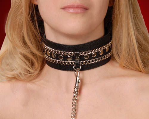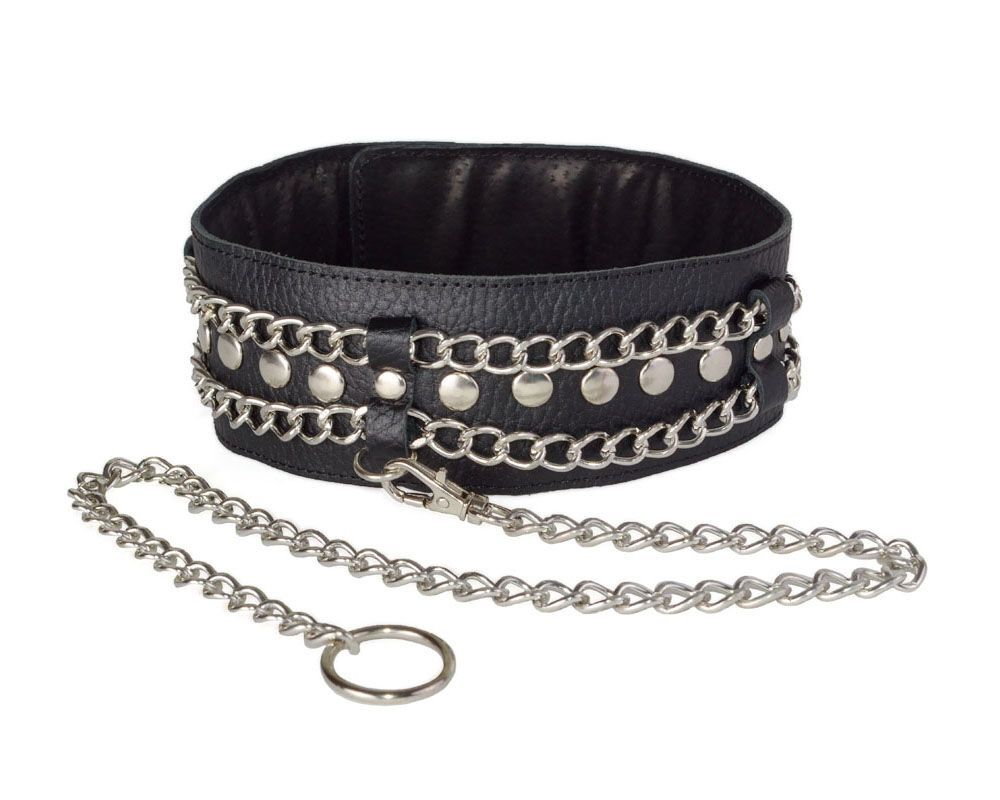Чёрный ошейник с цепочками и поводком