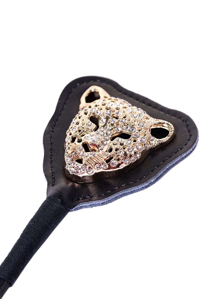 Чёрный стек с фигуркой леопарда на наконечнике - 50 см.